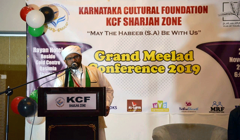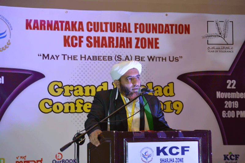 "ಹಬೀಬ್(ಸ.ಅ) ನಮ್ಮ ಜೊತೆಗಿರಲಿ’’ ಎಂಬ ಘೋಷವಾಕ್ಯದೊಂದಿಗೆ ಕೆಸಿಎಫ್ ಶಾರ್ಜಾ ಝೋನ್ ವತಿಯಿಂದ ಇಲ್ಲಿನ ಅಲ್ ಖಾಸಿಮಿಯಾದ ರಯಾನ್ ಹೊಟೇಲ್ನಲ್ಲಿ ಇತ್ತೀಚೆಗೆ ನಡೆದ ಮೀಲಾದ್ ಸಂಗಮದ ಮುಖ್ಯ ಅತಿಥಿಗಳಾಗಿ ಭಾಗವಹಿಸಿ ಅವರು ಮಾತನಾಡಿದರು.