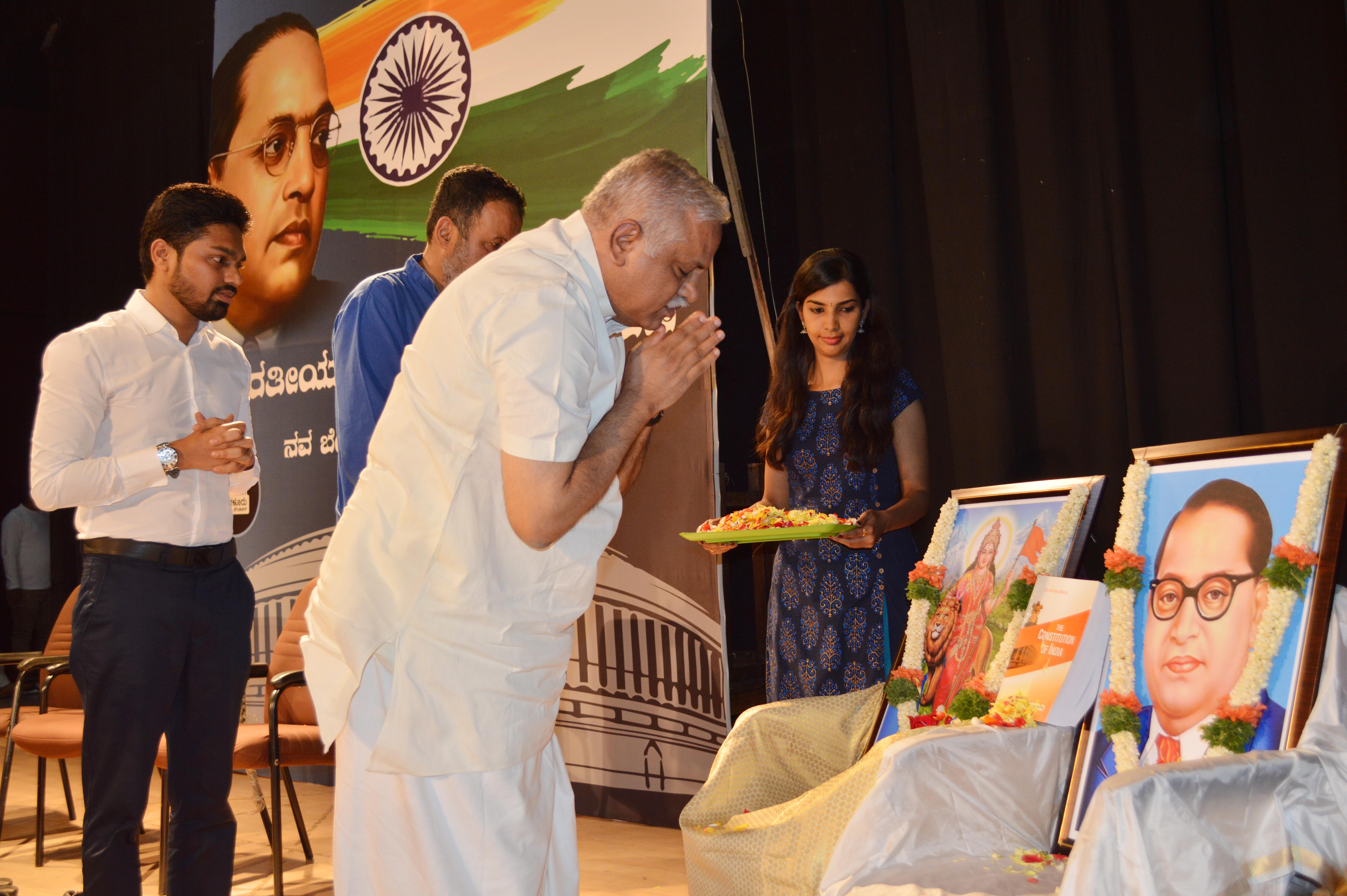 ರವಿವಾರ ನಗರದ ಆರ್.ವಿ. ಕಾಲೇಜಿನಲ್ಲಿ ನವ ಬೆಂಗಳೂರು ಫೌಂಡೇಷನ್ನಿಂದ ಆಯೋಜಿಸಿದ್ದ ಭಾರತೀಯ ಸಂವಿಧಾನ ದಿನಾಚರಣೆ ಕಾರ್ಯಕ್ರಮದಲ್ಲಿ ಪಾಲ್ಗೊಂಡು ಮಾತನಾಡಿದ ಅವರು, ಅಸ್ಪೃಶ್ಯತೆಯ ಬಗ್ಗೆ ಮಾತನಾಡುವವರು ಮೊದಲು ತಮ್ಮ ಮನಸ್ಸುಗಳಿಂದ ಅದನ್ನು ತೊಳೆಯಬೇಕಿದೆ ಎಂದರು.