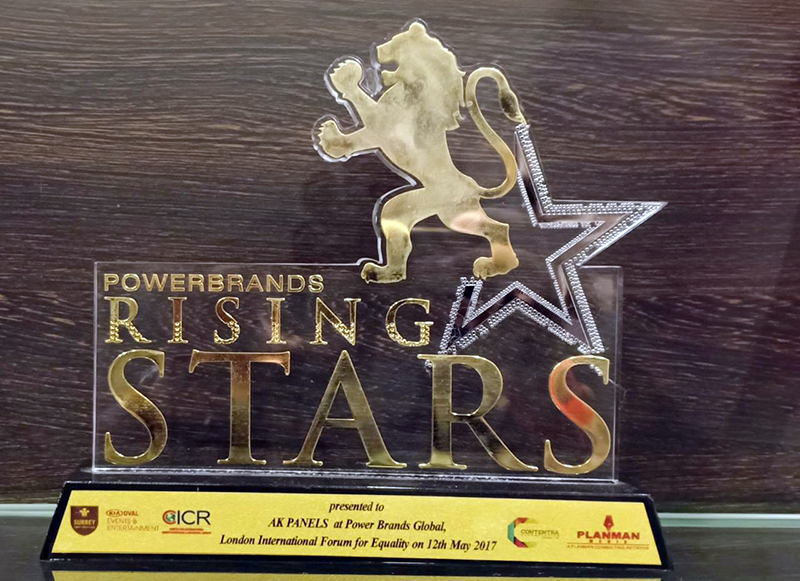 ಪ್ಲ್ಯಾನ್ ಮ್ಯಾನ್ ಮೀಡಿಯಾ 2017ರಲ್ಲಿ ಆಯೋಜಿಸಿದ್ದ ಪವರ್ ಬ್ರಾಂಡ್ಸ್ ಗ್ಲೋಬಲ್ ಲಂಡನ್ ಇಂಟರ್ ನ್ಯಾಶನಲ್ ಫೋರಂ ಫಾರ್ ಇಕ್ವಾಲಿಟಿಯಲ್ಲಿ ಎ.ಕೆ. ಪ್ಯಾನೆಲ್ಸ್ 'ಪವರ್ ಬ್ರಾಂಡ್ಸ್ ರೈಸಿಂಗ್ ಸ್ಟಾರ್ಸ್' ಪುರಸ್ಕಾರವನ್ನು ತನ್ನದಾಗಿಸಿದೆ.