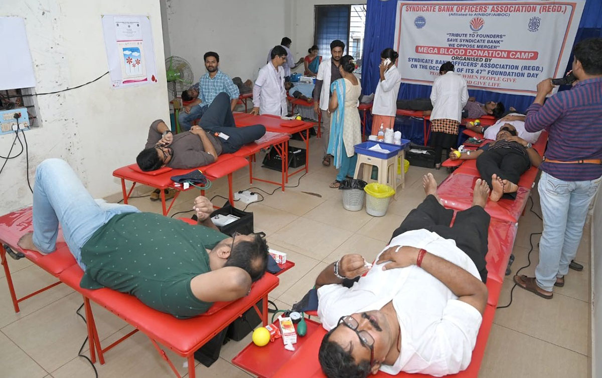 ಸಿಂಡಿಕೇಟ್ ಬ್ಯಾಂಕಿನ ವಿಲೀನ ವಿರೋಧಿಸಿ ರಕ್ತದಾನ ಶಿಬಿರ