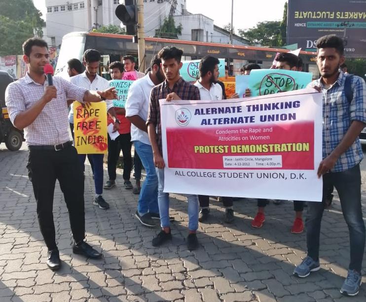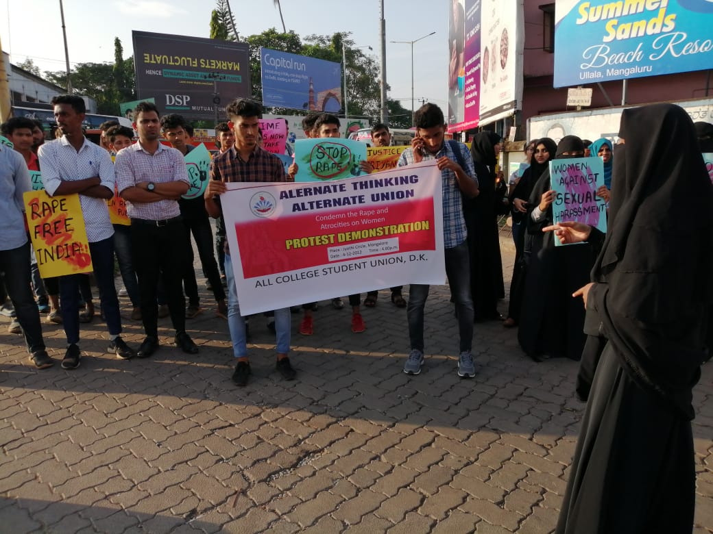 ಮಂಗಳೂರು: ಅತ್ಯಾಚಾರ, ಹತ್ಯೆ ಪ್ರಕರಣ ಖಂಡಿಸಿ ಸರ್ವ ಕಾಲೇಜು ಒಕ್ಕೂಟ ಪ್ರತಿಭಟನೆ
