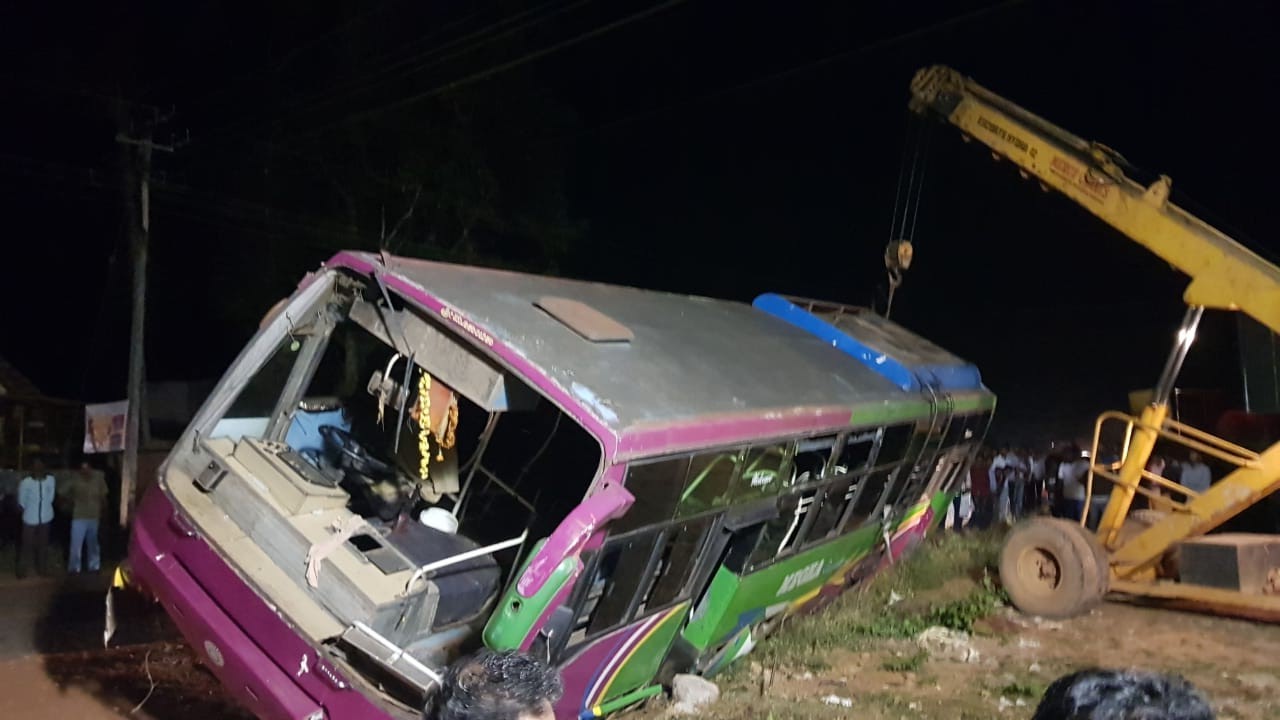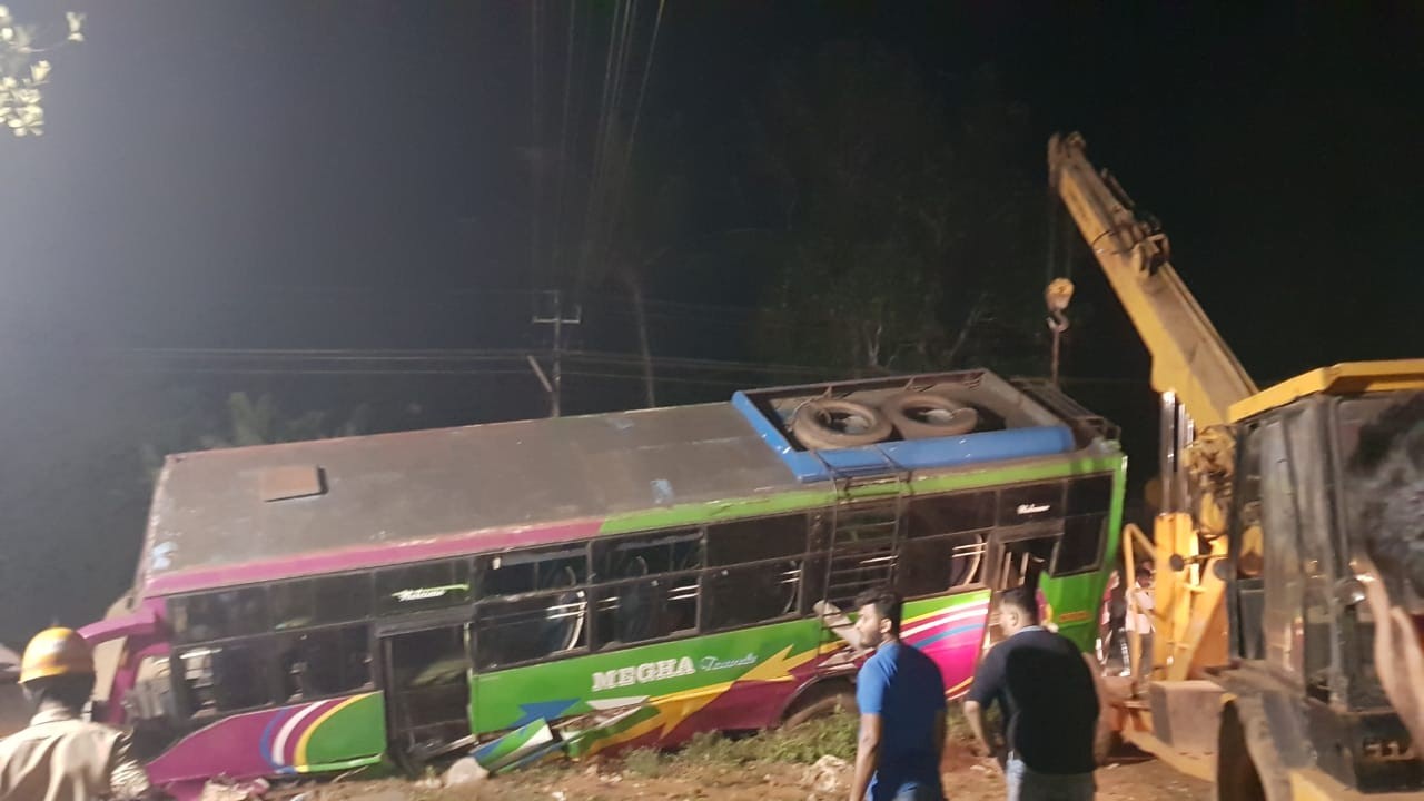 ಮೂಡುಬಿದಿರೆ : ಖಾಸಗಿ ಬಸ್ ಪಲ್ಟಿ; 18 ಮಂದಿಗೆ ಗಾಯ