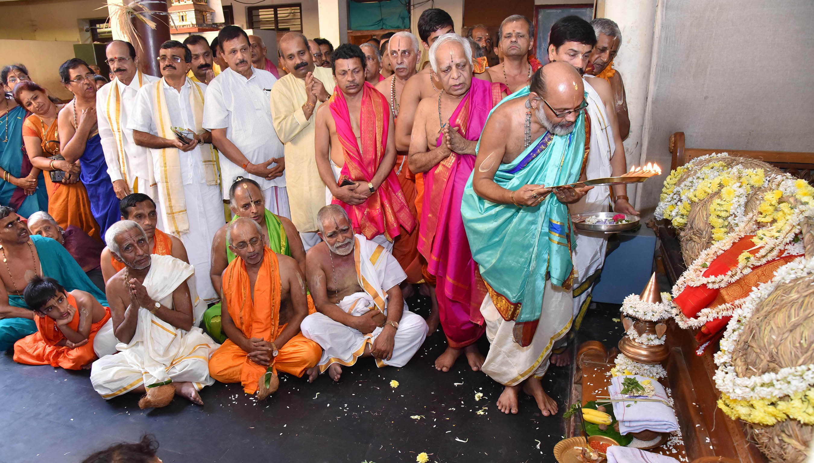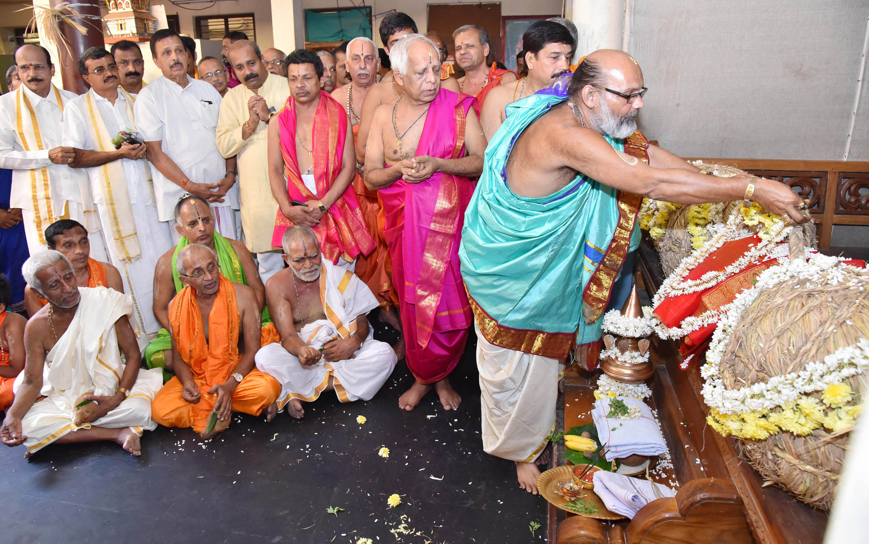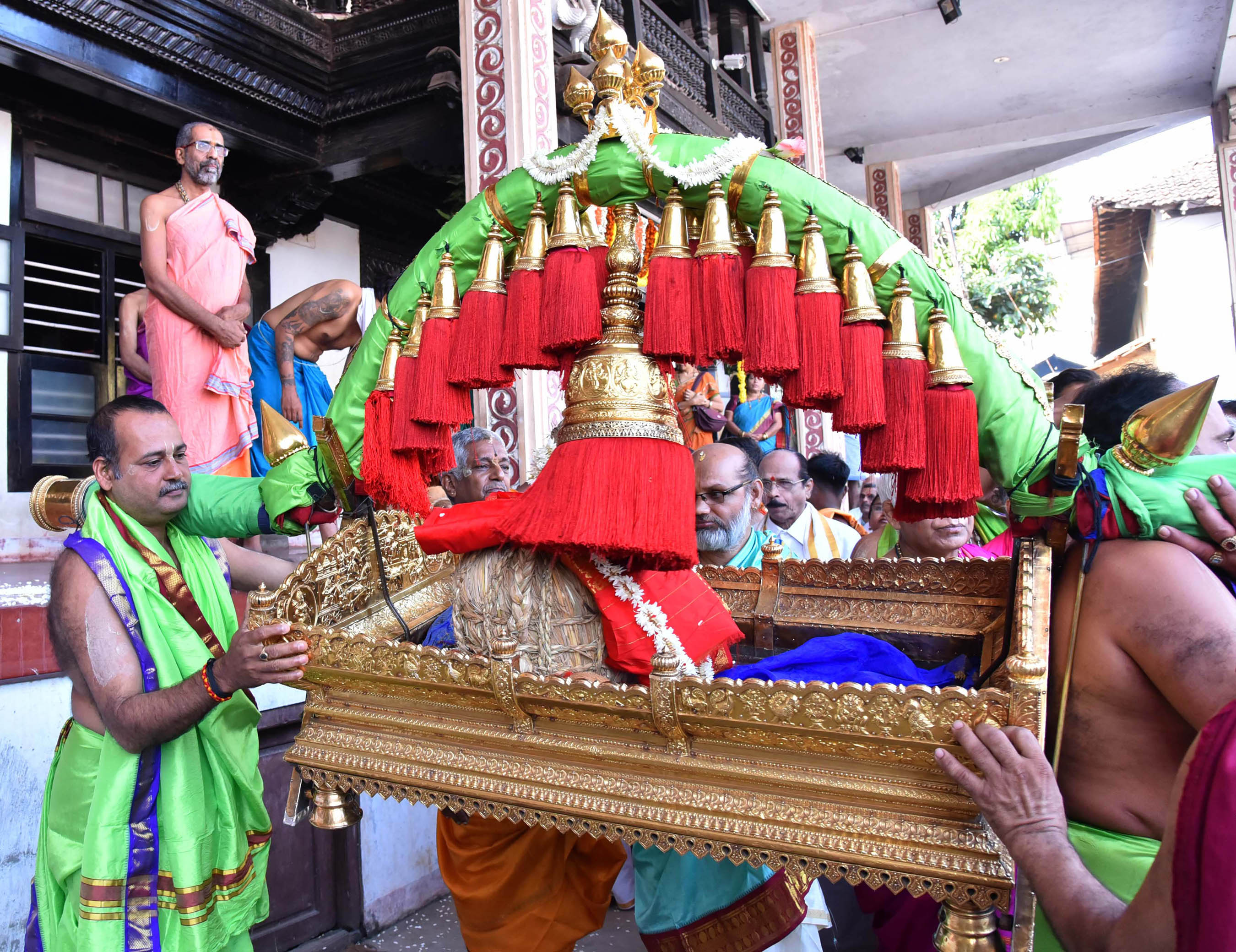 ಸಂಪ್ರದಾಯದಂತೆ ಇಂದು ಮುಂಜಾನೆ ಅದಮಾರು ಮಠದ ದಿವಾನರಾದ ಲಕ್ಷ್ಮೀನಾರಾಯಣ ಮುಚ್ಚಿಂತಾಯ ಹಾಗೂ ಮಠದ ಪುರೋಹಿತರಾದ ಶಿಬರೂರು ವಾಸುದೇವ ಆಚಾರ್ಯರ ನೇತೃತ್ವದಲ್ಲಿ ಅದಮಾರು ಮಠದ ಪಟ್ಟ ದೇವರಿಗೆ ಪ್ರಾರ್ಥನೆ ಸಲ್ಲಿಸಿ, ಊರಿನ ಗಣ್ಯರು, ಮಠ ಅಭಿಮಾನಿಗಳು ಸಹಿತ ಸಕಲ ಬಿರುದುಬಾವಲಿಗಳೊಂದಿಗೆ ಮೆರವಣಿಗೆಯಲ್ಲಿ ತೆರಳಿ ಚಂದ್ರೇಶ್ವರ, ಅನಂತೇಶ್ವರ ದೇವ್ಥಾನಗಳಲ್ಲಿ ಪ್ರಾರ್ಥನೆ ಸಲ್ಲಿಸಿದರು.