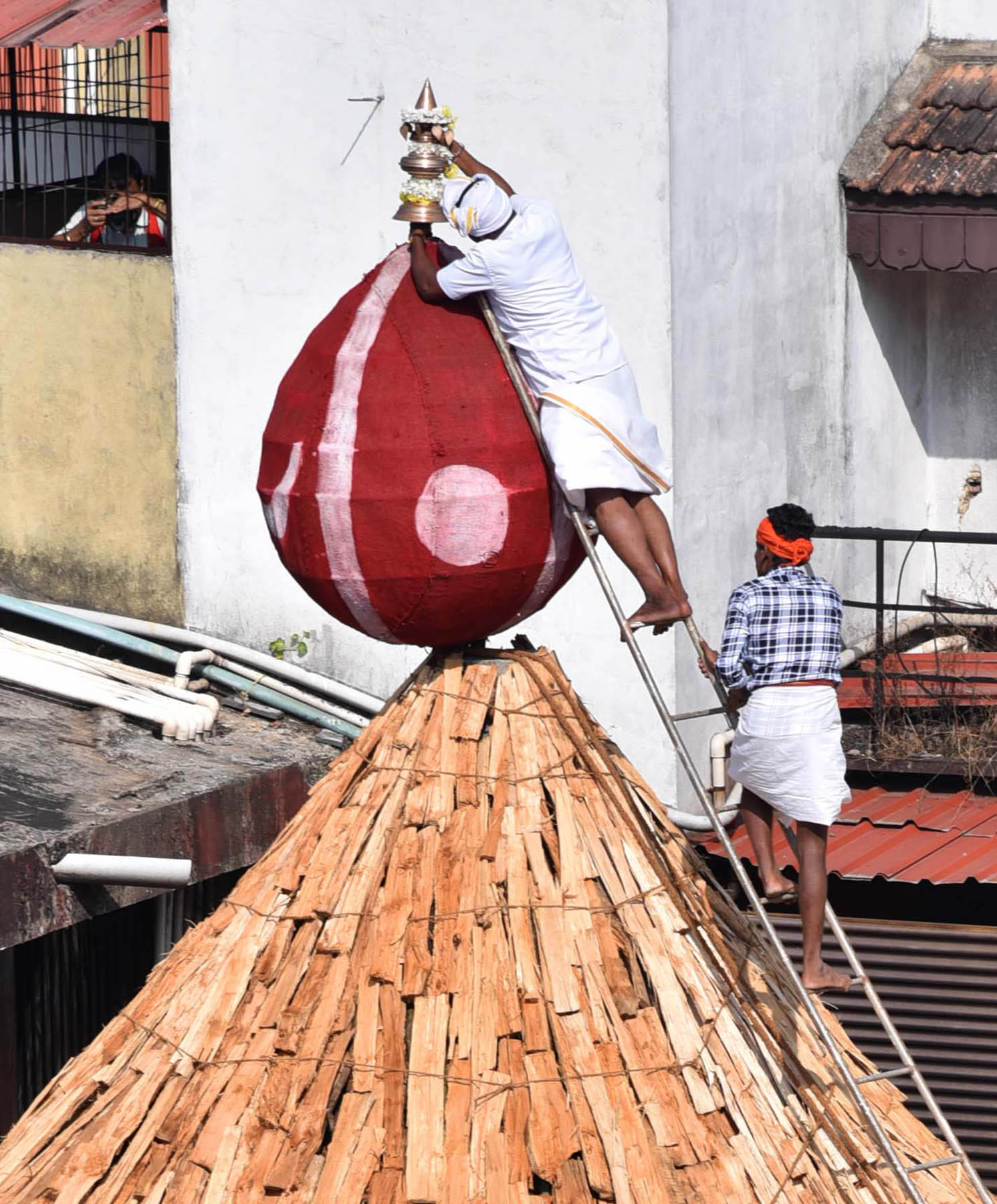 ಆ ಬಳಿಕ ಶ್ರೀಮಠಕ್ಕೆ ಮರಳಿ ಅಲ್ಲಿಂದ ಸಾಲಂಕೃತವಾದ ಭತ್ತದ ಮುಡಿಗಳನ್ನು ನಾಲ್ಕು ಮಂದಿ ತಲೆಯಲ್ಲಿ ಹೊತ್ತುಕೊಂಡು ಹಾಗೂ ಇನ್ನೊಂದು ಧಾನ್ಯದ ಚಿಕ್ಕಮುಡಿ ಮತ್ತು ಕಟ್ಟಿಗೆ ರಥದ ಕಲಶಯನ್ನು ಚಿನ್ನದ ಪಲ್ಲಕ್ಕಿಯಲ್ಲಿ ಇಟ್ಟು ಚೆಂಡೆ, ವಾದ್ಯ ಬಿರುದು ಬಾವಲಿ ಸಹಿತವಾಗಿ ರಥಬೀದಿಗೆ ಪ್ರದಕ್ಷಿಣೆ ಬಂದು ಶ್ರೀ ಕೃಷ್ಣಮಠದ ಬಡಗುಮಾಳಿಗೆಗೆ ತಂದು ಅಲ್ಲಿ ಮುಡಿಗನ್ನು ಪೀಠದಲ್ಲಿರಿಸಿ ಪೂಜಿಸಲಾಯಿತು.