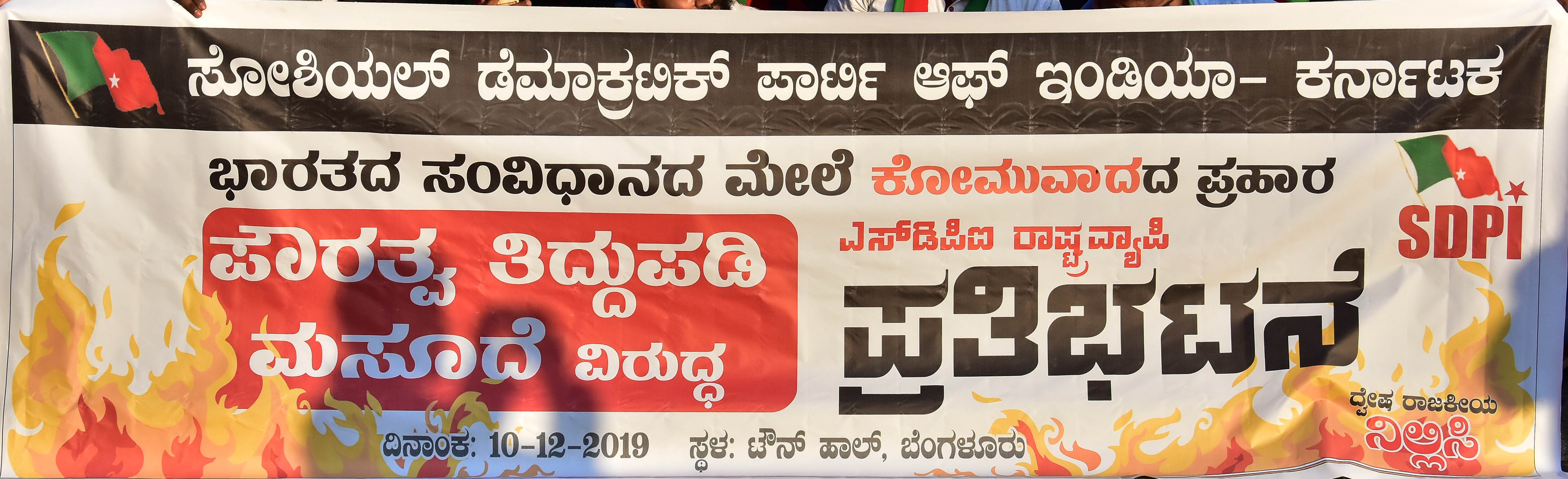ಬೆಂಗಳೂರು: ಪೌರತ್ವ ತಿದ್ದುಪಡಿ ಮಸೂದೆ ಖಂಡಿಸಿ ಎಸ್ಡಿಪಿಐ ಪ್ರತಿಭಟನೆ; ಮಸೂದೆ ಪ್ರತಿ ಸುಟ್ಟು ಆಕ್ರೋಶ