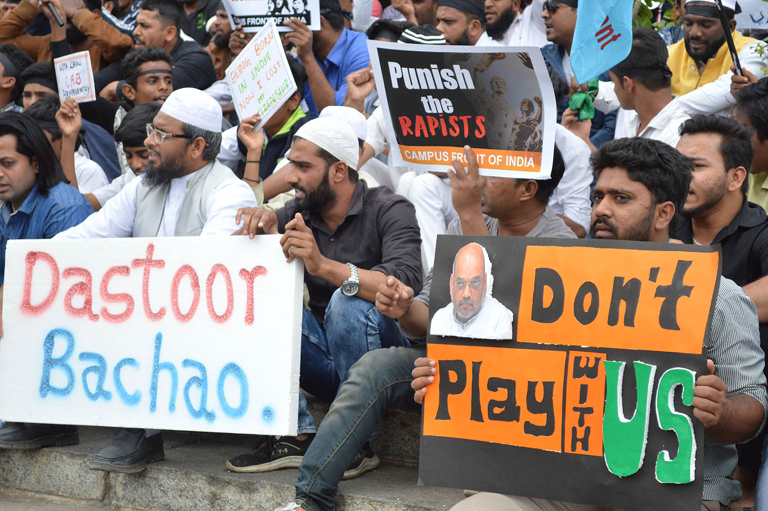 ಬೆಂಗಳೂರು, ಡಿ.14: ಕ್ಯಾಂಪಸ್ ಫ್ರಂಟ್ ಆಫ್ ಇಂಡಿಯಾ ವತಿಯಿಂದ ಎನ್ಆರ್ಸಿ, ಸಿಎಬಿ ಹಾಗೂ ಬಾಬರಿ ಮಸೀದಿ ತೀರ್ಪು ಖಂಡಿಸಿ ದಸ್ತೂರ್ ಬಚಾವೋ(ಸಂವಿಧಾನ ರಕ್ಷಿಸಿ) ಬೃಹತ್ ಪ್ರತಿಭಟನಾ ಸಭೆಯನ್ನು ನಗರದ ಪುರಭವನದ ಎದುರು ನಡೆಸಲಾಯಿತು.