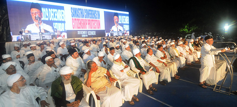 ಕಲ್ಲಿಕೋಟೆಯಲ್ಲಿ ನಡೆದ ಸಮಸ್ತ ಪೌರತ್ವ ಸಂರಕ್ಷಣಾ ಮಹಾ ಸಮ್ಮೇಳನದ ಅಧ್ಯಕ್ಷತೆ ವಹಿಸಿ ಅವರು ಮಾತನಾಡುತ್ತಿದ್ದರು.