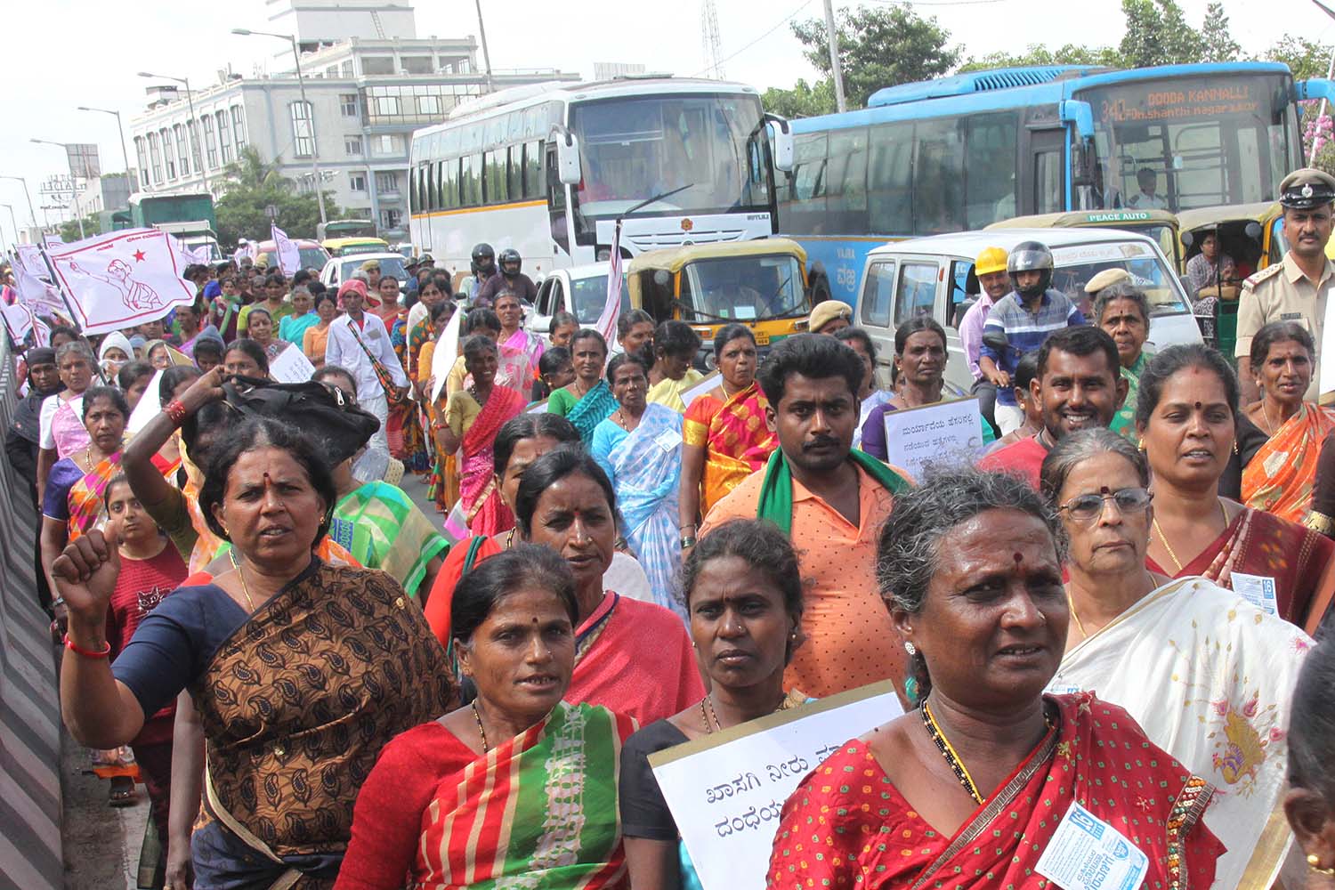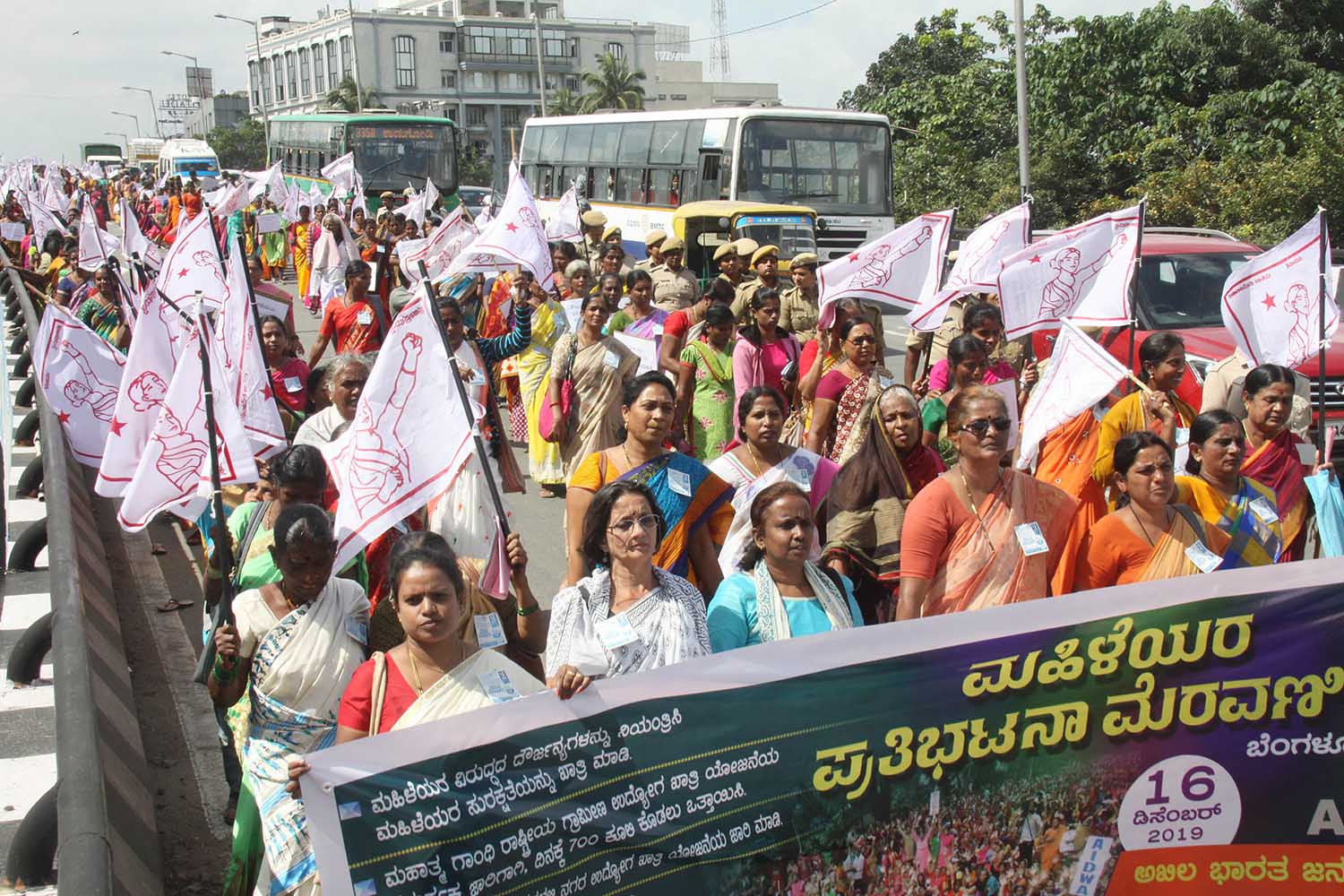 ದೌರ್ಜನ್ಯ ತಡೆ, ಉದ್ಯೋಗ ಖಾತ್ರಿ ಜಾರಿಗೆ ಪಟ್ಟು: ಬೆಂಗಳೂರಿನಲ್ಲಿ ಮಹಿಳೆಯರಿಂದ ಪ್ರತಿಭಟನಾ ಮೆರವಣಿಗೆ