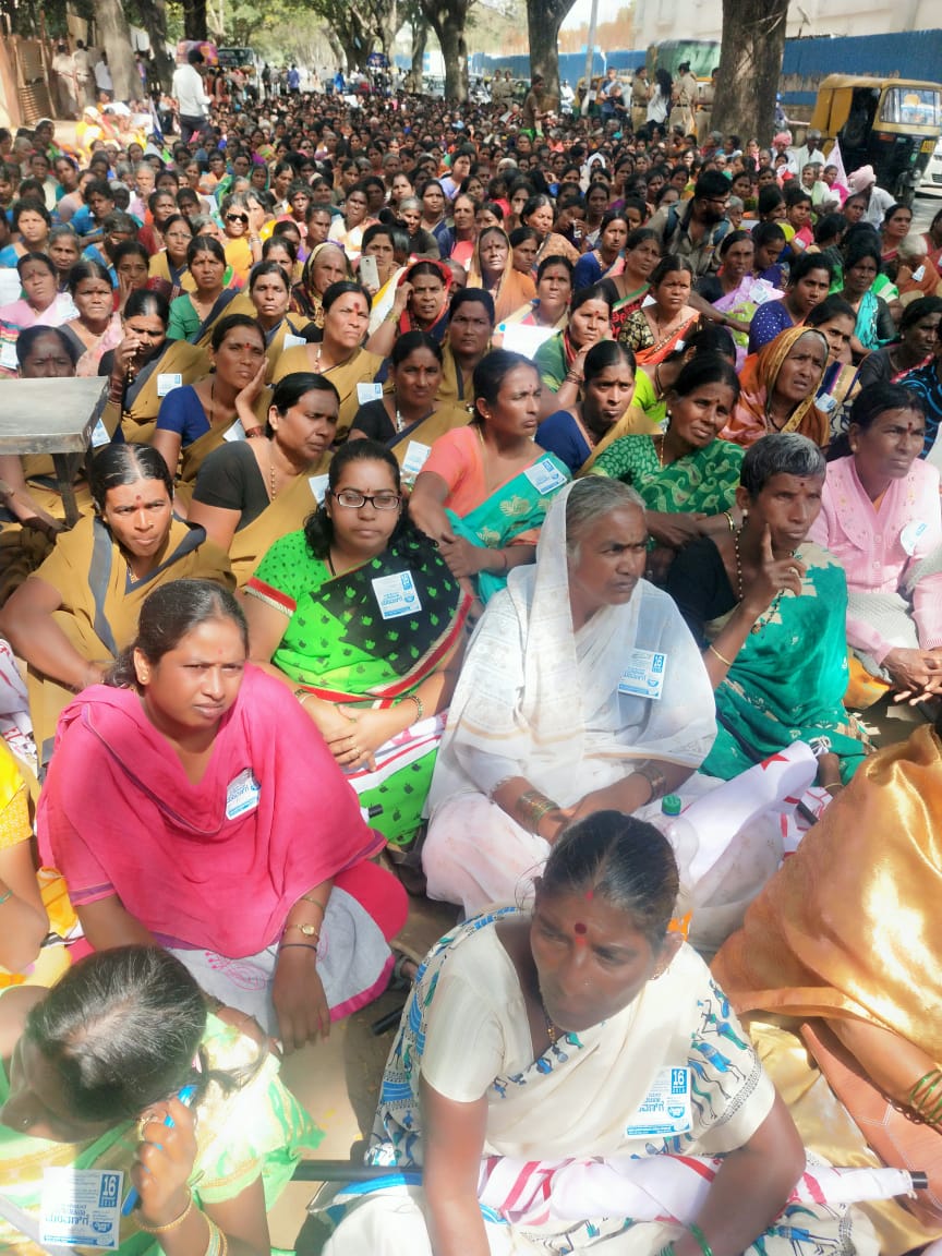 ಸೋಮವಾರ ನಗರದ ಸಂಗೊಳ್ಳಿ ರಾಯಣ್ಣ ರೈಲ್ವೇ ನಿಲ್ದಾಣದಿಂದ ಫ್ರೀಡಂ ಪಾರ್ಕ್ವರೆಗೂ ಅಖಿಲ ಭಾರತ ಜನವಾದಿ ಮಹಿಳಾ ಸಂಘಟನೆ ನೇತೃತ್ವದಲ್ಲಿ ಬೃಹತ್ ಪ್ರತಿಭಟನೆ ಮೆರವಣಿಗೆ ನಡೆಸಿದ ಮಹಿಳೆಯರು, ಸರಕಾರ ತಮ್ಮ ಬೇಡಿಕೆಗಳನ್ನು ಈಡೇರಿಸಬೇಕೆಂದು ಪಟ್ಟು ಹಿಡಿದರು.