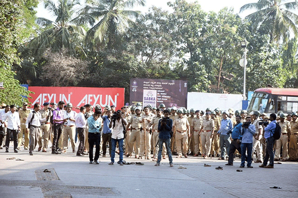ಪ್ರತಿಭಟನೆಯ ಹಿನ್ನೆಲೆಯಲ್ಲಿ ಸ್ಟೇಟ್ ಬ್ಯಾಂಕ್ ಬಳಿ ಬಸ್ ಸಂಚಾರ ಅಸ್ತವ್ಯಸ್ತಗೊಂಡಿದೆ. ಈ ನಡುವೆ ಹಲವರನ್ನು ಪೊಲೀಸರು ವಶಕ್ಕೆ ಪಡೆದಿದ್ದಾರೆ. ಪರಿಸರದ ಅಂಗಡಿಮುಂಗಟ್ಟುಗಳನ್ನು ಪೊಲೀಸರು ಮುಚ್ಚಿಸುತ್ತಿದ್ದಾರೆ.