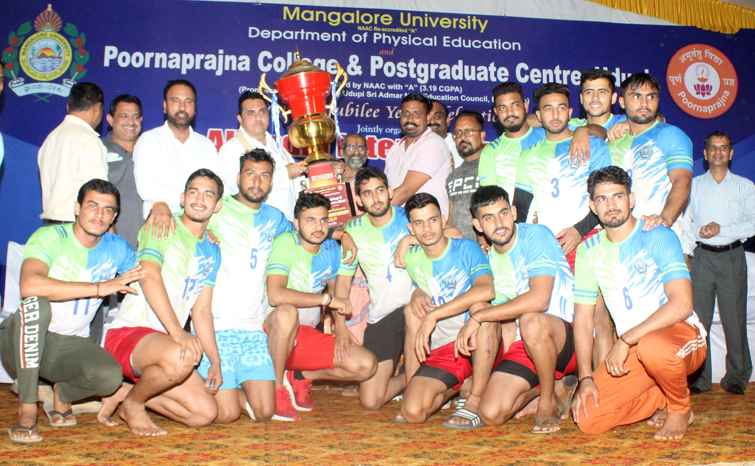 ಉಡುಪಿ, ಡಿ.21: ಭಾರತೀಯ ವಿಶ್ವವಿದ್ಯಾನಿಲಯಗಳ ಸಂಘದ ಆಶ್ರಯ ದಲ್ಲಿ ಮಂಗಳೂರು ವಿಶ್ವವಿದ್ಯಾನಿಲಯದ ದೈಹಿಕ ಶಿಕ್ಷಣ ವಿಭಾಗ ಹಾಗೂ ಉಡುಪಿ ಪೂರ್ಣಪ್ರಜ್ಞ ಕಾಲೇಜು ಮತ್ತು ಸ್ನಾತಕೋತ್ತರ ಕೇಂದ್ರದ ಸಹಭಾಗಿತ್ವ ದಲ್ಲಿ ಉಡುಪಿ ಪೂರ್ಣಪ್ರಜ್ಞ ಕಾಲೇಜಿನ ಮೈದಾನದಲ್ಲಿ ನಾಲ್ಕು ದಿನಗಳ ಕಾಲ ಹಮ್ಮಿಕೊಳ್ಳಲಾದ ಅಖಿಲ ಭಾರತ ಅಂತರ್ ವಿಶ್ವವಿದ್ಯಾನಿಲಯ ಪುರುಷರ ಕಬಡ್ಡಿ ಚಾಂಪಿಯನ್ಶಿಪ್ನಲ್ಲಿ ಹರಿಯಾಣ ರೋಹ್ಟಕ್ನ ಎಂ.ಡಿ. ವಿವಿಯು ಚಾಂಪಿಯನ್ ಆಗಿ ಮೂಡಿಬಂದಿದೆ.