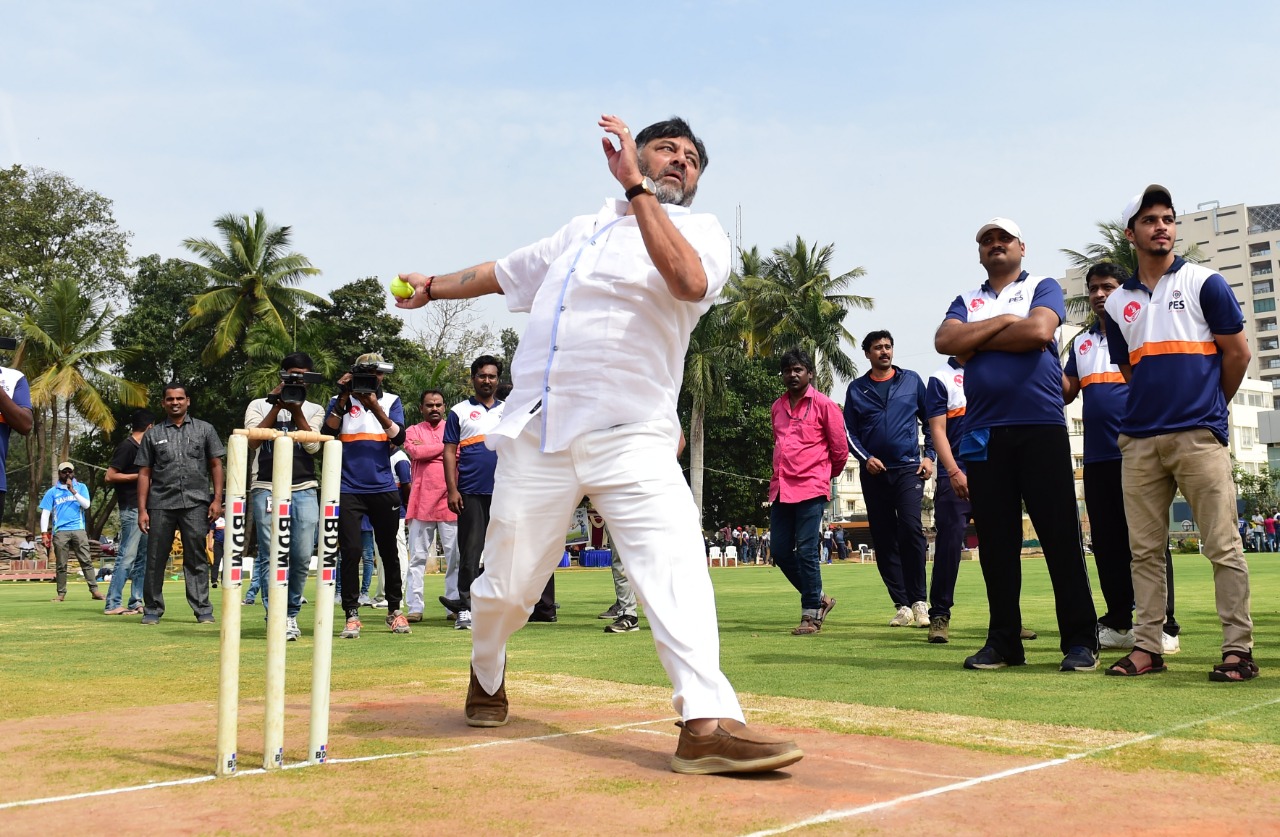 ಕ್ರಿಕೆಟ್ ಆಟವಾಡಿ ಗಮನ ಸೆಳೆದ ಡಿ.ಕೆ.ಶಿವಕುಮಾರ್