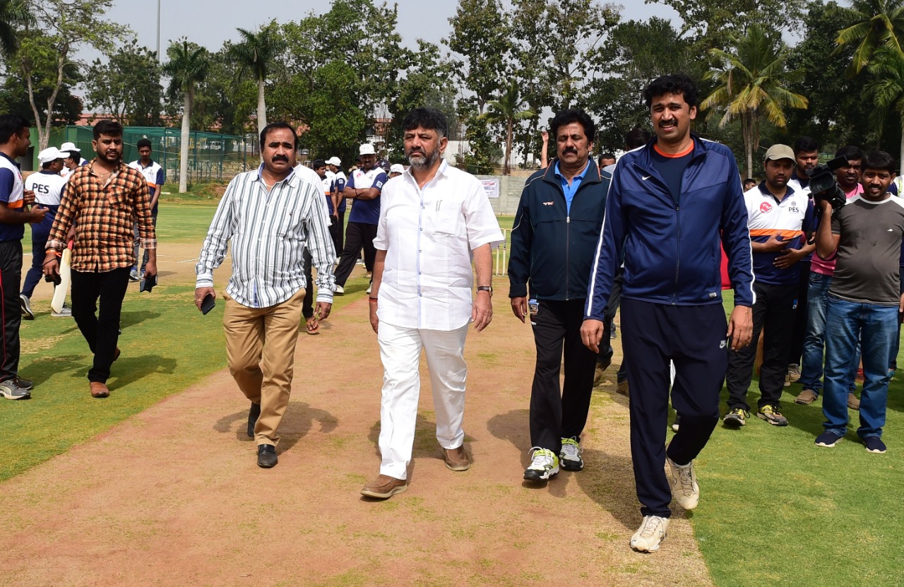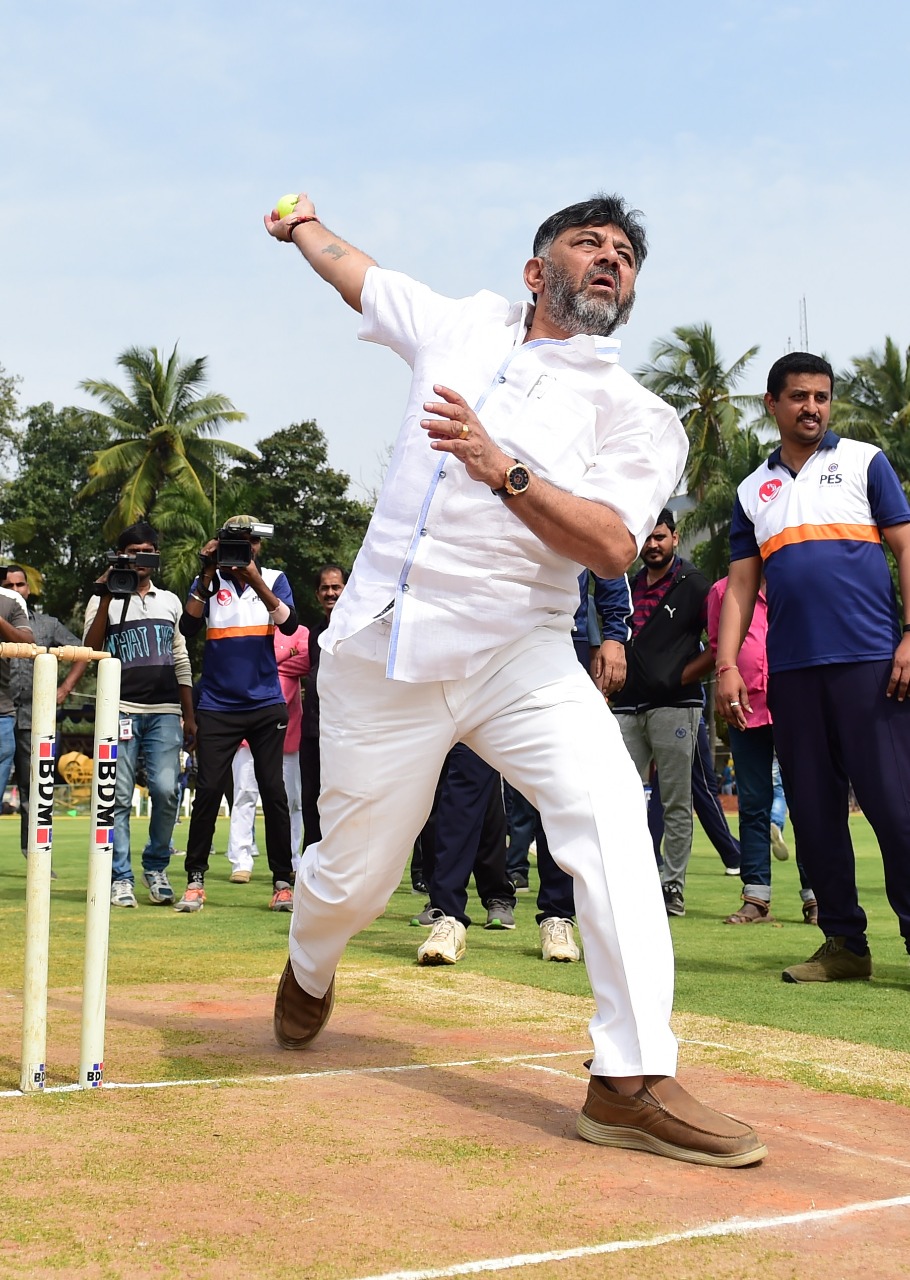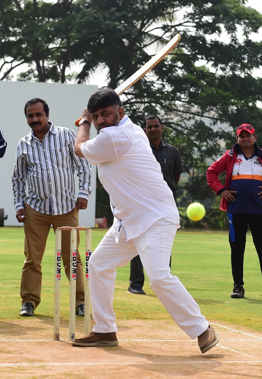 ಶನಿವಾರ ಇಲ್ಲಿನ ಹೊಸಕೆರೆಹಳ್ಳಿ ಸಮೀಪದ ಪಿಇಎಸ್ ಕಾಲೇಜು ಮೈದಾನದಲ್ಲಿ ಆಯೋಜಿಸಿದ್ದ ಇಂಟರ್ ಮೀಡಿಯಾ ಟಿ-10 ಕ್ರಿಕೆಟ್ ಪಂದ್ಯಾವಳಿಯನ್ನು ಉದ್ಘಾಟಿಸಿದ ಡಿ.ಕೆ.ಶಿವಕುಮಾರ್ ಕೆಲಕಾಲ ಬ್ಯಾಟ್ ಹಿಡಿದು ಚೆಂಡನ್ನು ಬೌಂಡರಿಗೆ ಅಟ್ಟಿದರು. ನಂತರ ಕೆಲ ಓವರ್ಗಳು ಬೌಲಿಂಗ್ ಮಾಡಿದ್ದು ವಿಶೇಷವಾಗಿತ್ತು.