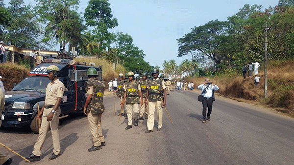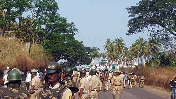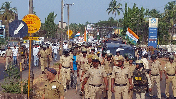 ಪ್ರತಿಭಟನೆಯ ಹಿನ್ನೆಲೆಯಲ್ಲಿ ಬಿಗು ಪೊಲೀಸ್ ಬಂದೋಬಸ್ತ್ ಕಲ್ಪಿಸಲಾಗಿದೆ.