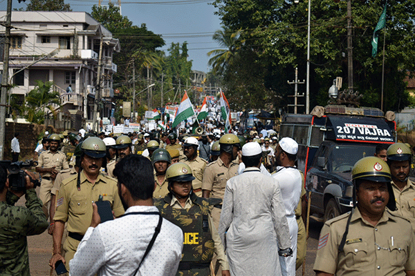 ಇದಕ್ಕೂ ಮೊದಲು ಇಲ್ಲಿನ ವೈಭವ್ ಹೋಟೆಲ್ ಬಳಿಯಿಂದ ಅಂಜುಮಾನ್ ಶಾಲೆಯವರೆಗೆ ಬೃಹತ್ ಪ್ರತಿಭಟನಾ ಮೆರವಣಿಗೆ ನಡೆಯಿತು. ಮೆರವಣಿಗೆಯಲ್ಲಿ ಸಿಎಎ, ಎನ್ಆರ್ಸಿ ವಿರುದ್ಧ ಭಿತ್ತಿಪತ್ರಗಳನ್ನು ಪ್ರದರ್ಶಿಸಿದ ಪ್ರತಿಭಟನಾಕಾರರು ಈ ಕಾಯ್ದೆಗಳ ವಿರುದ್ಧ ಘೋಷಣೆಗಳನ್ನು ಕೂಗಿದರು.