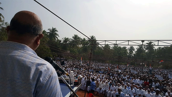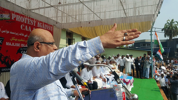 ಇಲ್ಲಿನ ಅಂಜುಮಾನ್ ಶಾಲಾ ಮೈದಾನದಲ್ಲಿ ನಡೆದ ಪ್ರತಿಭಟನಾ ಸಮಾವೇಶವನ್ನುದ್ದೇಶಿಸಿ ಮಾತನಾಡಿದ ಚಿಂತಕ, ಅಂಕಣಕಾರ ಶಿವಸುಂದರ್, ಸಿಪಿಎಂ ಮುಖಂಡ ಕೆ.ರಮೇಶ್ ಸಹಿತ ಹಲವರು ಮಾತನಾಡಿ, ಸಿಎಎ ಹಾಗೂ ಎನ್ಆರ್ಸಿ ವಿರುದ್ಧ ಆಕ್ರೋಶ ವ್ಯಕ್ತಪಡಿಸಿದರು.