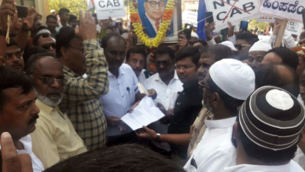 ಬಳಿಕ ಎನ್ಆರ್ಸಿ, ಸಿಎಎ ಹಿಂಪಡೆಯುವಂತೆ ಒತ್ತಾಯಿಸಿ ಬೇಡಿಕೆಗಳನ್ನು ಒಳಗೊಂಡ ಮನವಿಯನ್ನು ತಹಶೀಲ್ದಾರ್ ಮುಖಾಂತರ ರಾಜ್ಯಪಾಲರಿಗೆ ಸಲ್ಲಿಸಲಾಯಿತು.
