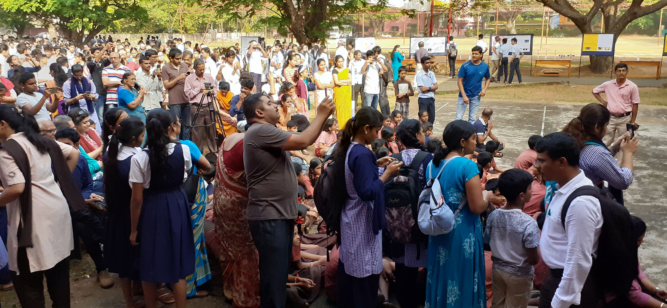 ಸೇರಿದ್ದ ಹೆಚ್ಚಿನ ವಿದ್ಯಾರ್ಥಿಗಳು ಗ್ರಹಣ ವೀಕ್ಷಣೆಯ ಕನ್ನಡವನ್ನು ಹೊಂದಿದ್ದರೆ, ಕಾಲೇಜಿನಲ್ಲಿರುವ ಎರಡು ಬೃಹತ್ ಅಟೋಮೇಟಿಕ್ ಎಲೆಕ್ಟ್ರಾನಿಕ್ಸ್ (8 ಇಂಚು ಮತ್ತು 4 ಇಂಚು) ಟೆಲಸ್ಕೋಪ್ಗಳಲ್ಲದೇ, ಎರಡು ಮ್ಯಾನುವೆಲ್ ಟೆಲಸ್ಕೋಪ್ ಗಳನ್ನು ಗ್ರಹಣ ವೀಕ್ಷಿಸಲು ಬಳಸಲಾಗಿತ್ತು. ಇಬ್ಬರು ವಿದ್ಯಾರ್ಥಿಗಳು ಸಹ ಎರಡು ಮ್ಯಾನುವೆಲ್ ಟೆಲಸ್ಕೋಪ್ಗಳನ್ನು ತಂದಿದ್ದರು.
