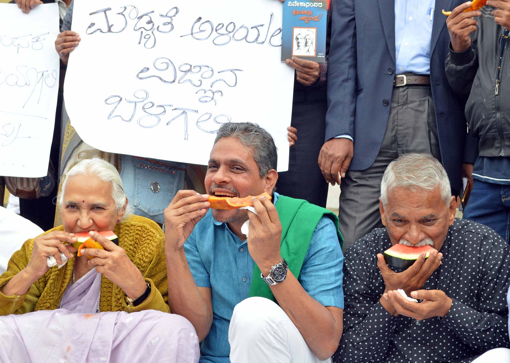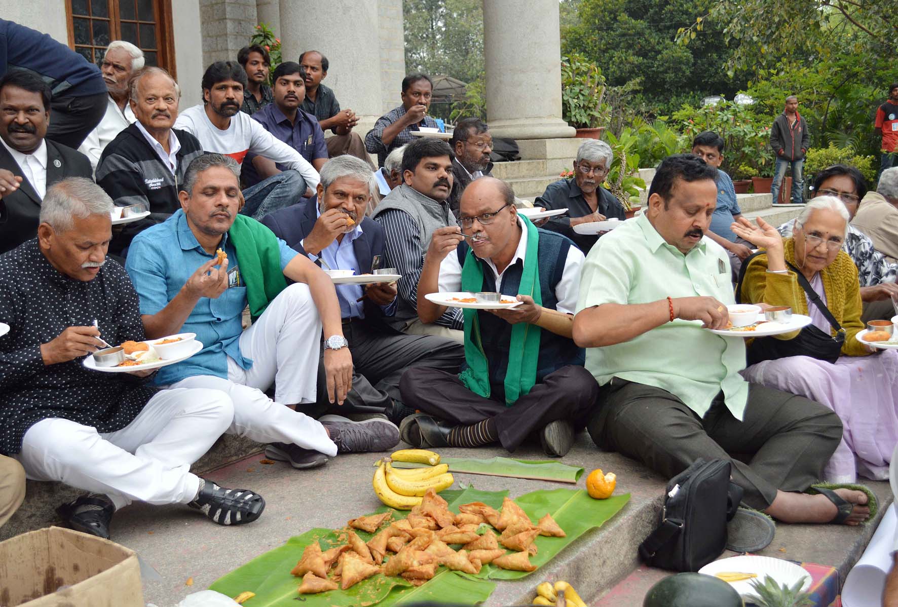 ಇದೇ ಸಂದರ್ಭದಲ್ಲಿ ಇಲ್ಲಿ ಪಾಲ್ಗೊಂಡಿದ್ದವರಿಗೆ ಬಿಸಿಬೇಳೆ ಬಾತ್ ಹಾಗೂ ಕಲ್ಲಂಗಡಿ, ಪಪ್ಪಾಯ, ಆಪಲ್ ಸೇರಿದಂತೆ ಹಲವು ರೀತಿಯ ಹಣ್ಣು-ಹಂಪಲುಗಳನ್ನು ವಿತರಣೆ ಮಾಡಿ, ಸೇವಿಸಿದರು. ಈ ವೇಳೆ ಮಾಜಿ ಸಚಿವೆ ಬಿ.ಟಿ.ಲಲಿತಾ ನಾಯಕ್, ರೈತ ಮುಖಂಡ ವೀರಸಂಗಯ್ಯ, ವೇದಿಕೆಯ ಮುಖ್ಯಸ್ಥ ನರಸಿಂಹಮೂರ್ತಿ ಸೇರಿದಂತೆ ಹಲವರಿದ್ದರು.