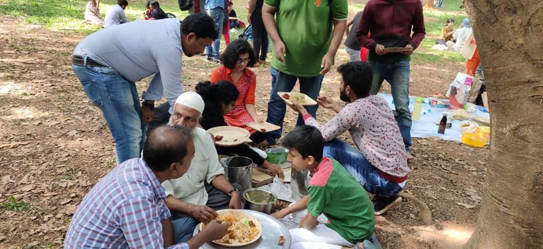 ‘ಸರ್ವಜನಾಂಗದ ಶಾಂತಿಯ ತೋಟ’ ಎಂಬ ವಾಕ್ಯದೊಂದಿಗೆ ಜತೆಯಾದ ನೂರಾರು ಮಂದಿ, ಮನೆಗಳಿಂದ ತಯಾರಿಸಿ ತಂದ, ಊಟದ ಪೊಟ್ಟಣಗಳನ್ನು ಬಿಚ್ಚಿ, ಹಂಚಿದರು.ಇನ್ನು, ಕೆಲವರು ಹೋಟೆಲ್ ಮೂಲಕ ತಂದ ಆಹಾರನ್ನು ಬಡಿಸಿದರು.