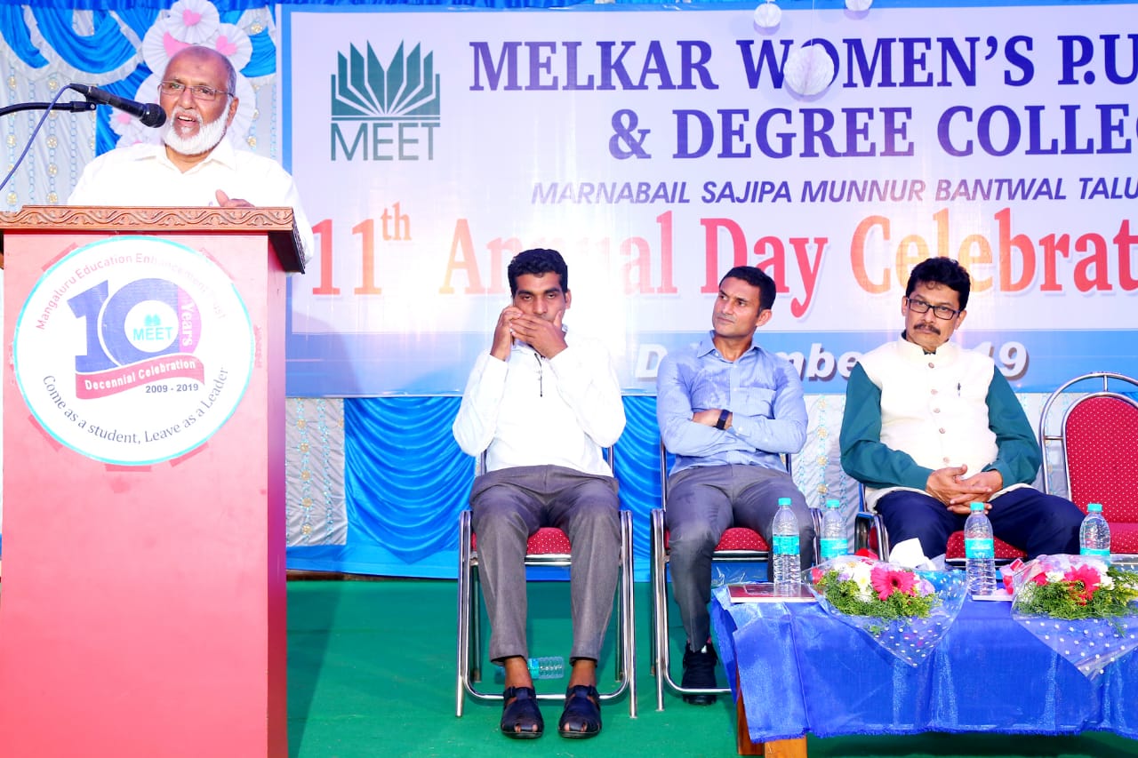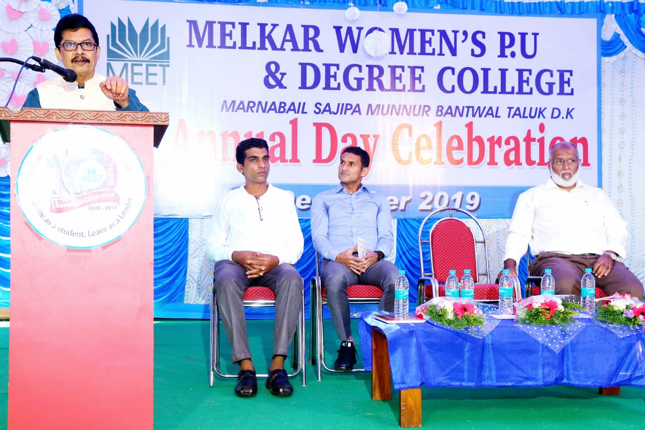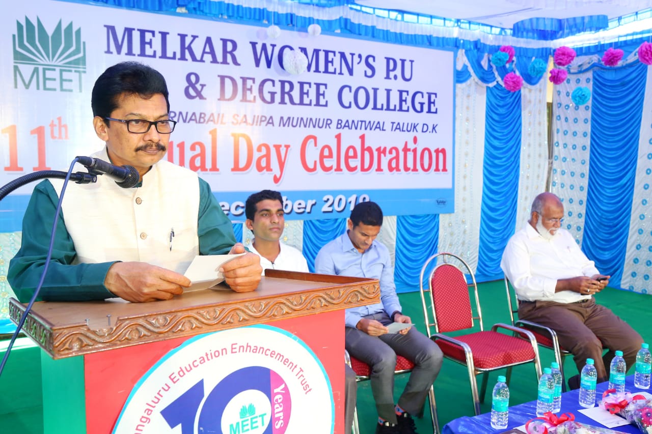ಮಂಗಳೂರು ಎಜುಕೇಶನ್ ಎನ್ಹ್ಯಾನ್ಸ್ ಮೆಂಟ್ ಟ್ರಸ್ಟ್ ನಡಿ ಸಜೀಪ ಮುನ್ನೂರಿನ ಮಾರ್ನಬೈಲ್ನಲ್ಲಿ ಕಾರ್ಯಾಚರಿಸುತ್ತಿರುವ ಮೆಲ್ಕಾರ್ ಮಹಿಳಾ ಪದವಿ ಪೂರ್ವ ಹಾಗೂ ಪದವಿ ಕಾಲೇಜಿನ 11ನೇ ವಾರ್ಷಿಕೋತ್ಸವವನ್ನು ಉದ್ಘಾಟಿಸಿ ವಿದ್ಯಾರ್ಥಿಗಳನ್ನು ಉದ್ದೇಶಿಸಿ ಅವರು ಮಾತನಾಡಿದರು.