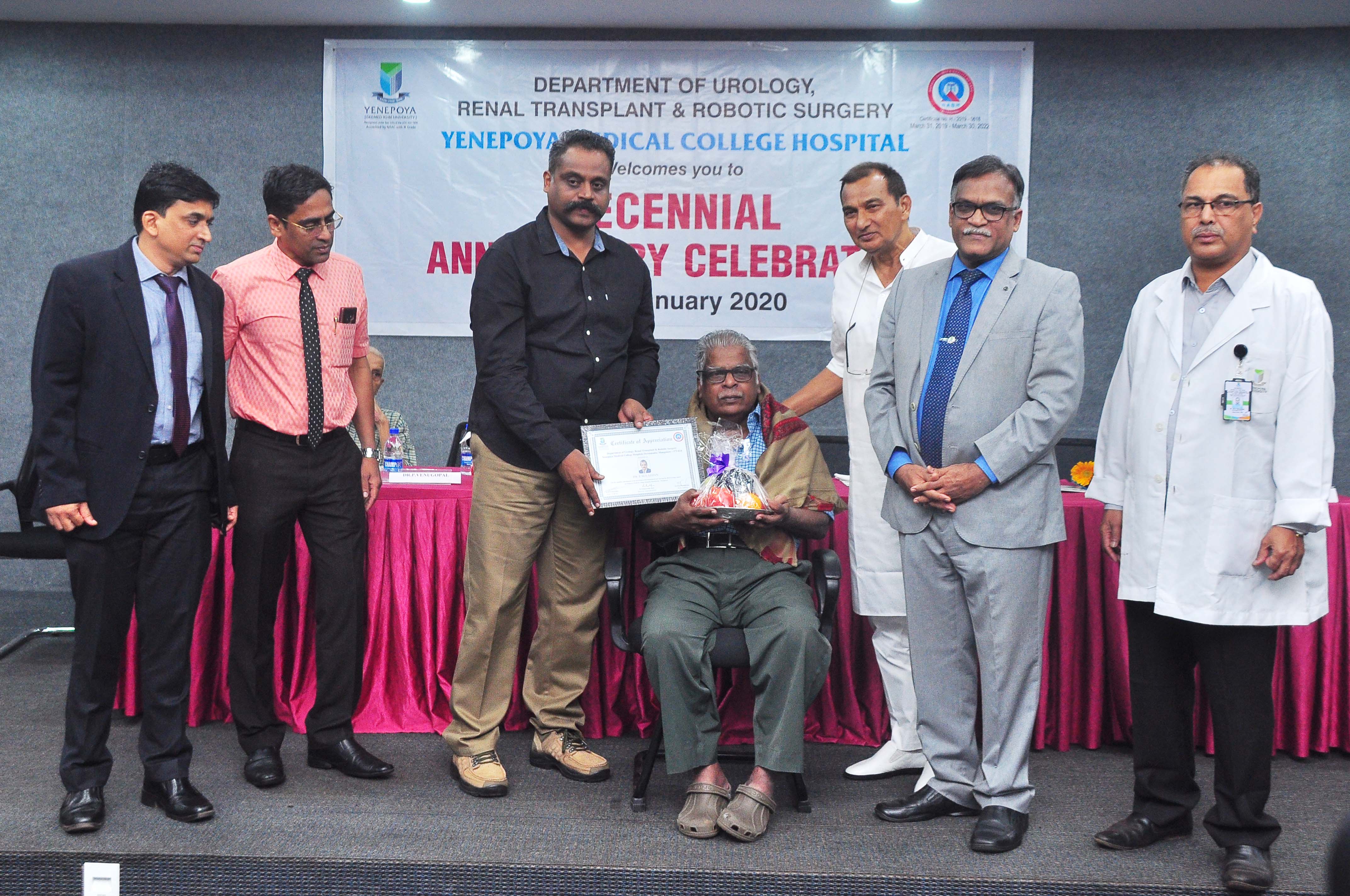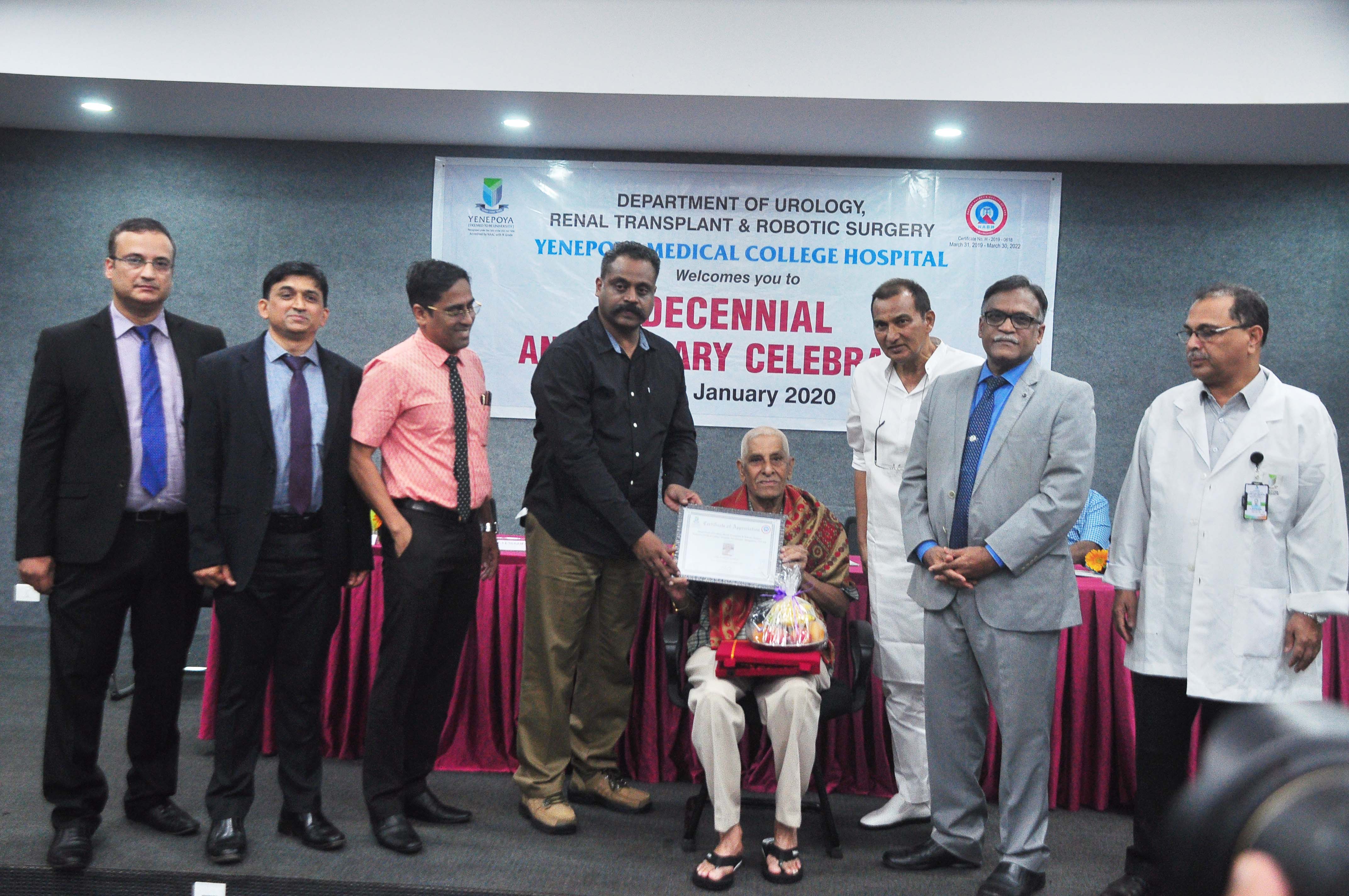 ಯೆನೆಪೋಯ ವೈದ್ಯಕೀಯ ಕಾಲೇಜು ಆಸ್ಪತ್ರೆಯ ಮೂತ್ರಶಾಸ್ತ್ರ ವಿಭಾಗದ ಮೂತ್ರಪಿಂಡ ಕಸಿ ಮತ್ತು ರೋಬೋಟಿಕ್ ಸರ್ಜರಿ ಆಶ್ರಯದಲ್ಲಿ ಮೂತ್ರಶಾಸ್ತ್ರ ವಿಭಾಗದ ದಶಮಾನೋತ್ಸವ ಸಮಾರಂಭದಲ್ಲಿ ಹಿರಿಯ ಮೂತ್ರಶಾಸ್ತ್ರಜ್ಞರಾದ ಡಾ.ಪಿ ವೇಣುಗೋಪಾಲ್ ಮತ್ತು ಡಾ.ಇ.ಸುಲೈಮಾನ್ ಅವರನ್ನು ಸನ್ಮಾನಿಸಿ ಮಾತನಾಡಿದರು.