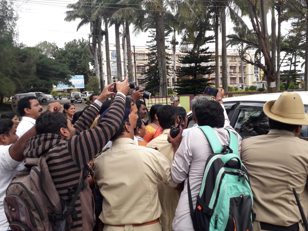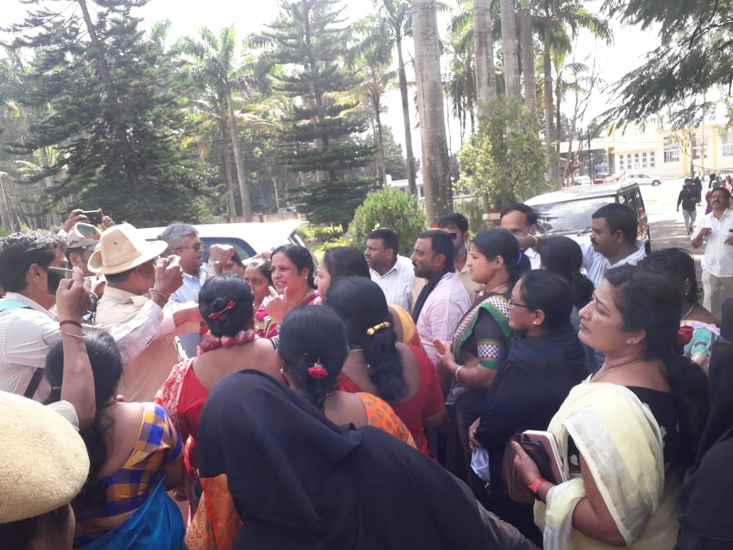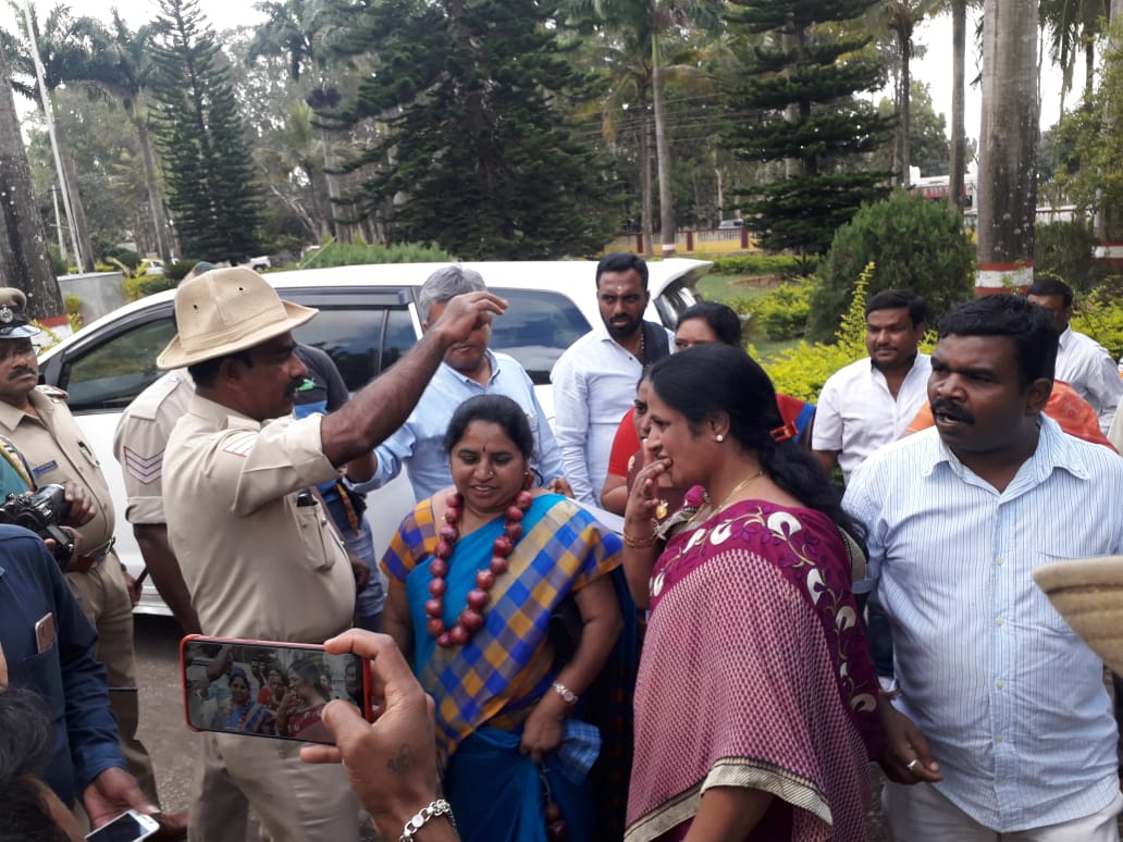 ಮಹಿಳಾ ಘಟಕದ ನಾಯಕಿ ವನಮಾಲ ದೇವರಾಜ್ ಮಾತನಾಡಿದರು. ಧರಣಿ ವೇಳೆ ಜಿಲ್ಲಾ ಪಂಚಾಯತ್ ಕಚೇರಿಗೆ ದಿಶಾ ಕಾರ್ಯಕ್ರಮದ ನಿಮಿತ್ತ ಆಗಮಿಸಿದ್ದ ಸಂಸದೆ ಶೋಭಾ ಕರಂದ್ಲಾಜೆ ಅವರಿಗೆ ಮಹಿಳಾ ಕಾಂಗ್ರೆಸ್ ಮುಖಂಡರು ಮನವಿ ನೀಡಲು ಮುಂದಾದಾಗ ಕೆಲ ಮಹಿಳೆಯರು ಈರುಳ್ಳಿಯಿಂದ ಮಾಡಲಾಗಿದ್ದ ಹಾರವೊಂದನ್ನು ಸಂಸದೆಯ ಕುತ್ತಿಗೆಗೆ ಹಾಕಲು ಮುಂದಾದರು. ಸ್ಥಳದಲ್ಲಿದ್ದ ಪೊಲೀಸರು ಇದಕ್ಕೆ ಅವಕಾಶ ನೀಡಲಿಲ್ಲ. ಸಂಸದೆ ಶೋಭಾ ಮನವಿ ಸ್ವೀಕರಿಸದೇ ಕಾರಿನಲ್ಲೇ ಕುಳಿತು ಜಿಪಂ ಕಚೇರಿ ಗೇಟ್ ಒಳಗೆ ಪ್ರವೇಶಿಸಿದರು. ಪೊಲೀಸರು ಧರಣಿ ನಿರತರನ್ನು ತಡೆದು ಹೊರ ಕಳುಹಿಸಿದರು.