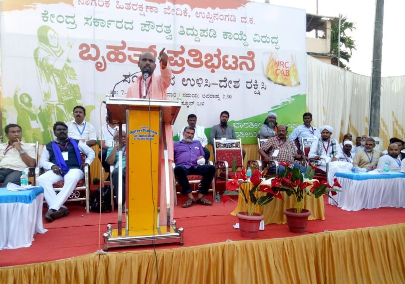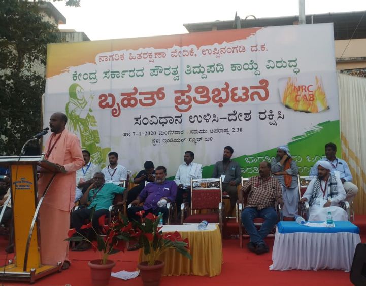 ರಾಜ್ಯ ಹೈಕೋರ್ಟ್ ನ್ಯಾಯವಾದಿ ಬಾಲನ್ ಮಾತನಾಡಿ, ಬಿಜೆಪಿ, ಆರೆಸ್ಸೆಸ್ ಹಿಂದೂ ಪರವಾಗಿವೆ ಎಂಬ ಗ್ರಹಿಕೆ ತಪ್ಪು. ಇವುಗಳು ಬ್ರಾಹ್ಮಣ ಪರವಾಗಿವೆ. ದೇಶದ ಆಯಕಟ್ಟಿನ ಜಾಗದಲ್ಲಿ ಬ್ರಾಹ್ಮಣ ಶಾಹಿಗಳೇ ತುಂಬಿಕೊಂಡಿದ್ದಾರೆ. ಇವರೆಲ್ಲಾ ದಲಿತ, ಶೂದ್ರರ ವಿರೋಧಿಗಳು. ಆದ್ದರಿಂದ ಸಿಎಎ, ಎನ್ಆರ್ ಸಿ ತಿದ್ದುಪಡಿ ಕಾಯ್ದೆಯ ವಿರುದ್ಧ ನಾವೆಲ್ಲರೂ ಒಂದಾಗಿ ಹೋರಾಡಬೇಕು. ಪೌರತ್ವ ಸಾಬೀತಿಗಾಗಿ ದಾಖಲೆ ಕೇಳಿಕೊಂಡು ಮನೆಗೆ ಬರುವ ಅಧಿಕಾರಿಗಳಲ್ಲಿ ನಾವು ಮೊದಲು ದಾಖಲೆ ಕೇಳೋಣ. ಮೊದಲು ಅವರು ಪೌರತ್ವ ಸಾಬೀತುಪಡಿಸಲಿ. ಬೇರೆ ದೇಶದ ನಿರಾಶ್ರಿತ ಮುಸಲ್ಮಾನರು ನಮ್ಮ ದೇಶಕ್ಕೆ ಬೇಡವೆನ್ನುವುದು ಅಸ್ಪೃಶ್ಯತೆ ಮಾಡಿದಂತೆ. ಸಂವಿಧಾನದಡಿಯಲ್ಲಿ ಅಸ್ಪೃಶ್ಯತೆ ಅಪರಾಧ. ಆದ್ದರಿಂದ ಸಿಎಎ ಬೆಂಬಲಿಸುವವರನ್ನು ಅಟ್ರಾಸಿಟಿ ಪ್ರಕರಣ ದಾಖಲಿಸಿ ಜೈಲಿಗಟ್ಟುವ ಕೆಲಸ ಮೊದಲಿಗಾಗಬೇಕು. ನಿರುದ್ಯೋಗ, ಬೆಲೆಯೇರಿಕೆ ಸೇರಿದಂತೆ ನೂರಾರು ಸಮಸ್ಯೆಗಳಿದ್ದು, ಅದರನ್ನು ಮರೆಮಾಚಲು ಕೇಂದ್ರ ಸರಕಾರ ಇಂತಹ ಕಾಯ್ದೆಗಳನ್ನು ತಂದಿದೆ. ದೇಶದ ಸಂವಿಧಾನಕ್ಕೆ ಧಕ್ಕೆ ತರುವಂತಹ ಇಂತಹ ಕಾನೂನನ್ನು ತರುವ ಬದಲು ಕೋಟಿಗಟ್ಟಲೆ ದೇಶದ ಸಂಪತ್ತನ್ನು ಲೂಟಿ ಮಾಡಿ ವಿದೇಶಕ್ಕೆ ಪರಾರಿಯಾಗಿರುವ ಬ್ರಾಹ್ಮಣ ಶಾಹಿಗಳನ್ನು ವಾಪಸ್ ದೇಶಕ್ಕೆ ಕರೆತಂದು ಶಿಕ್ಷೆ ನೀಡುವ ಕಾನೂನನ್ನು ಮೊದಲು ಕೇಂದ್ರ ಸರಕಾರ ತರಬೇಕಿದೆ ಎಂದು ತಿಳಿಸಿದರು.