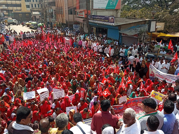 ಬ್ಯಾಂಕ್ ಎಂಪ್ಲಾಯ್ಸ್, ಎಲ್ಐಸಿ ನೌಕಕರ ಅಸೋಸಿಯೇಶನ್, ಸಿಐಟಿಯು, ಸಿಪಿಎಂ, ಅಂಗನವಾಡಿ ಕಾರ್ಯಕರ್ತೆಯರ ಸಂಘಟನೆ ಸೇರಿದಂತೆ ಸುಮಾರು 10ಕ್ಕೂ ಹೆಚ್ಚು ಸಂಘಟನೆಗಳ ನೇತೃತ್ವದಲ್ಲಿ ಅಂಬೇಡ್ಕರ ವೃತ್ತದ ಎದುರು ಪ್ರತಿಭಟನೆ ನಡೆಸಿದರು.