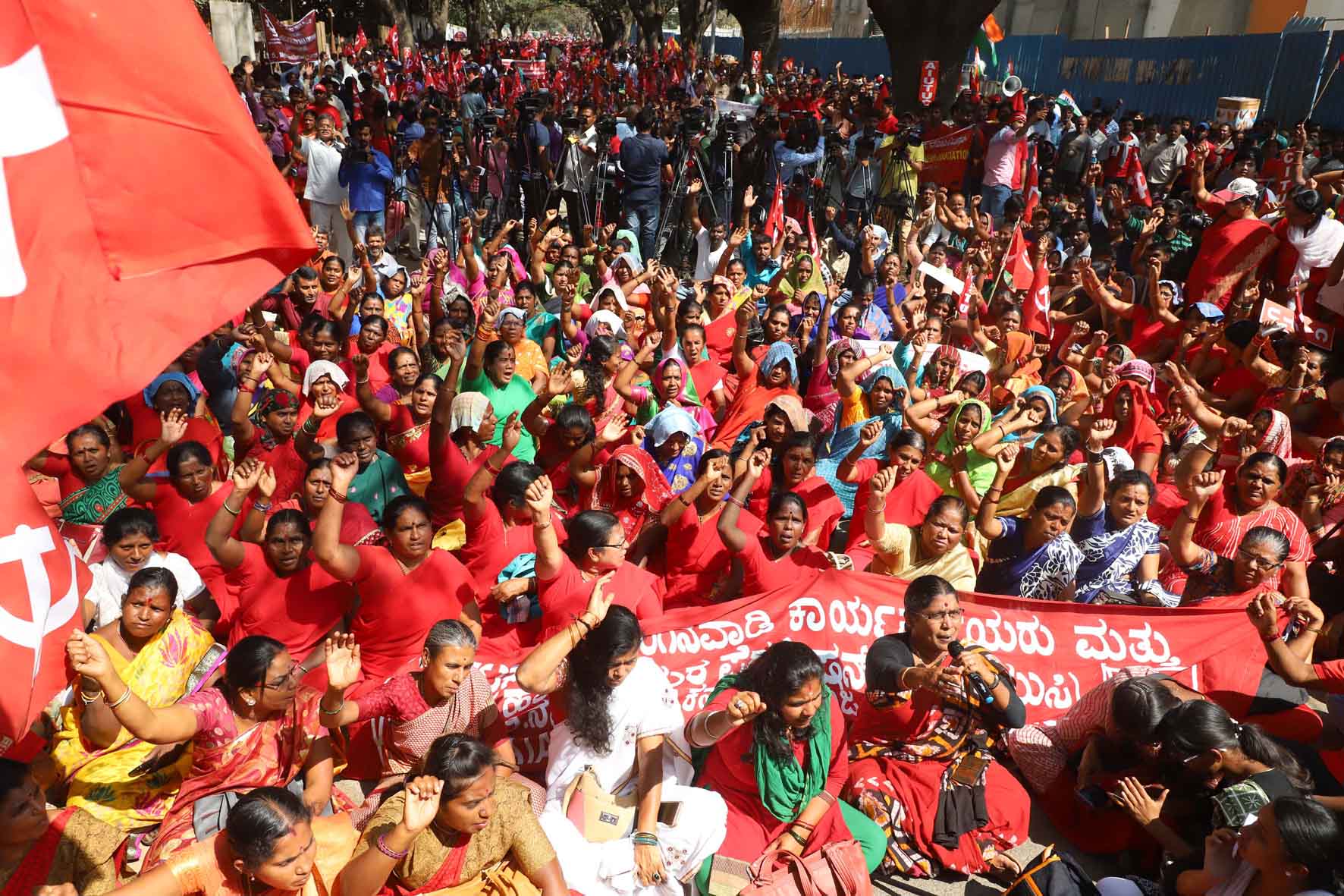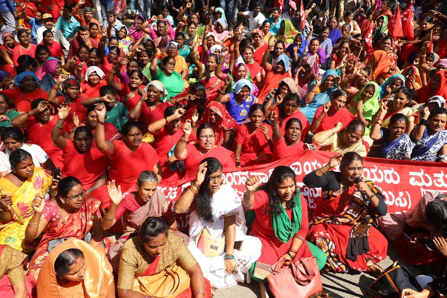 ವಿವಿಧ ಕಾರ್ಮಿಕ ಸಂಘಟನೆಗಳಿಂದ ಬೆಂಗಳೂರಿನಲ್ಲಿ ಬೃಹತ್ ಪ್ರತಿಭಟನೆ