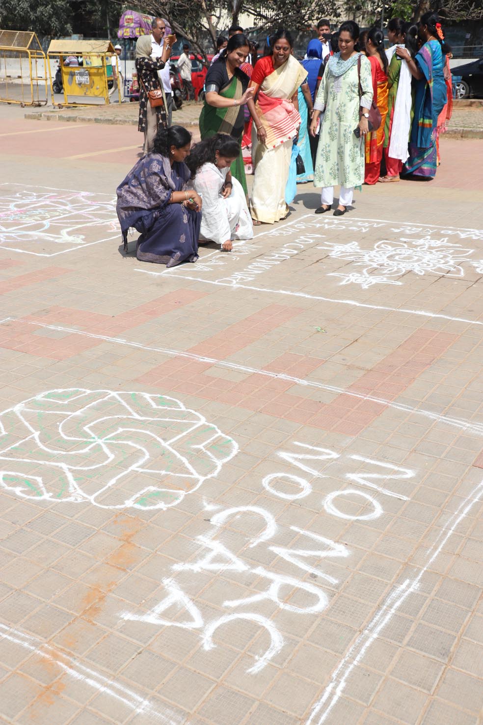 ಬೆಂಗಳೂರು, ಜ.9: ಪೌರತ್ವ (ತಿದ್ದುಪಡಿ) ಕಾಯ್ದೆ ವಿರೋಧಿಸಿ ನೂರಾರು ಮಹಿಳಾ ಕಾಂಗ್ರೆಸ್ ಸದಸ್ಯೆಯರು, ರಂಗೋಲಿ ಹಾಕುವ ಮೂಲಕ ವಿಭಿನ್ನವಾಗಿ ಪ್ರತಿಭಟನೆ ನಡೆಸಿದರು.