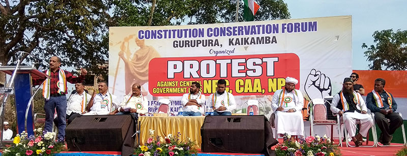 ಕೈಕಂಬ : ಎನ್ಆರ್ಸಿ, ಸಿಎಎ ಮತ್ತು ಎನ್ಪಿಆರ್ ಕಾಯ್ದೆ ವಿರುದ್ಧ `ಸಂವಿಧಾನ ಸಂರಕ್ಷಣಾ ವೇದಿಕೆ'ಯು ಶುಕ್ರವಾರ ಗುರುಪುರ ಕೈಕಂಬದ ಆದರ್ಶನಗರದ ಮೈದಾನದಲ್ಲಿ ಬೃಹತ್ ಪ್ರತಿಭಟನಾ ಸಭೆ ನಡೆಸಿತು.