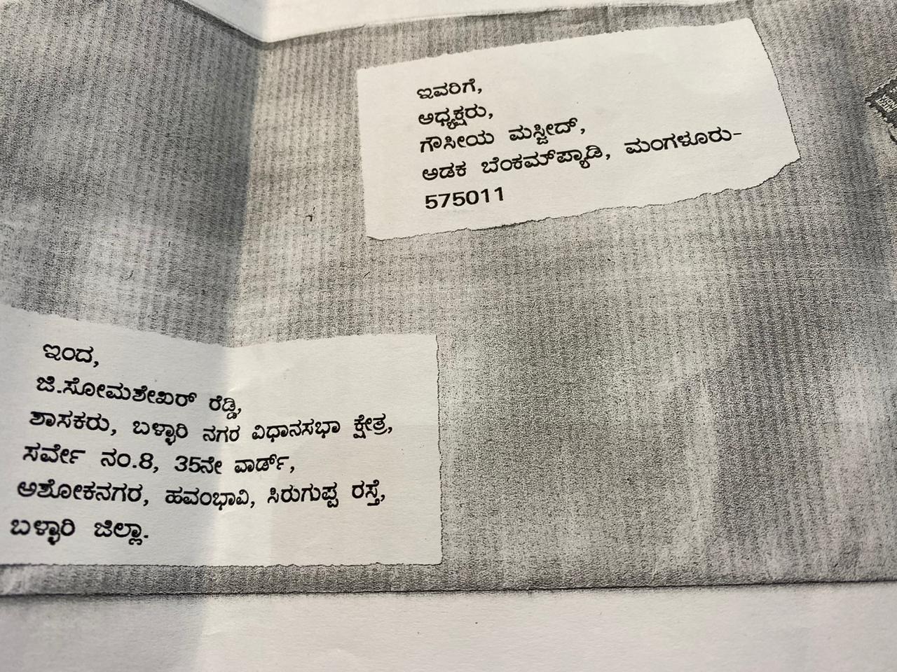 ಎನ್ಆರ್ಸಿ ಮೂಲಕ ಹಿಂದೂ ರಾಷ್ಟ್ರ ಮಾಡುತ್ತೇವೆ: ಭಟ್ಕಳದ ಮಸೀದಿಗಳಿಗೆ ಬಳ್ಳಾರಿ ಬಿಜೆಪಿ ಶಾಸಕರಿಂದ ಪತ್ರ ?