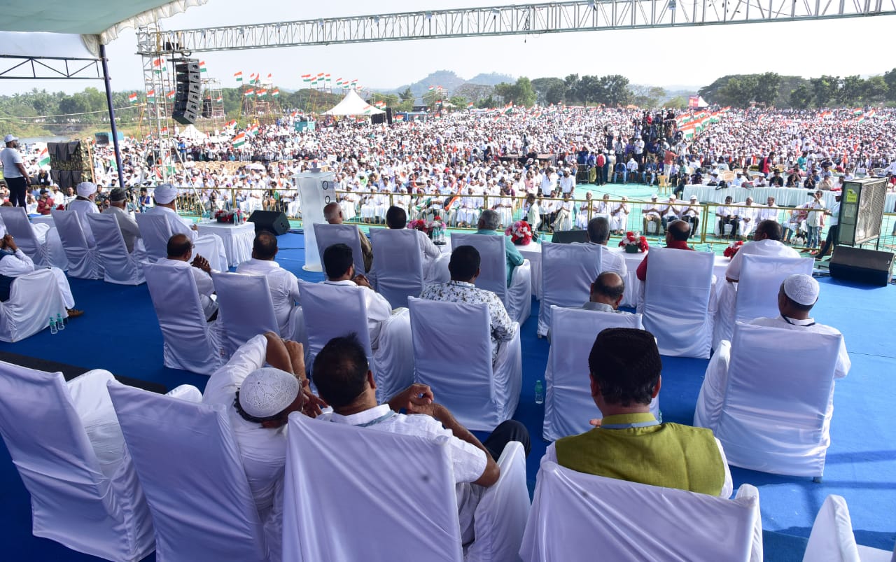 ಮಂಗಳೂರು, ಜ.15: ಕೇಂದ್ರ ಸರಕಾರ ಜಾರಿಗೊಳಿಸಲು ಉದ್ದೇಶಿಸಿರುವ ಎನ್ಆರ್ಸಿ, ಸಿಎಎ, ಎನ್ಪಿಆರ್ ವಿರುದ್ಧ ದ.ಕ. ಮತ್ತು ಉಡುಪಿ ಜಿಲ್ಲಾ ಮುಸ್ಲಿಂ ಸೆಂಟ್ರಲ್ ಕಮಿಟಿಯ ನೇತೃತ್ವ ಹಾಗೂ ಸಮಾನ ಮನಸ್ಕ ಸಂಘಟನೆಗಳ ಸಹಯೋಗದಲ್ಲಿ ನಡೆದ ಪ್ರತಿಭಟನಾ ಸಮಾವೇಶವು ಲಕ್ಷಕ್ಕೂ ಅಧಿಕ ಜನರನ್ನು ಸಂಘಟಿಸುವಲ್ಲಿ ಯಶಸ್ವಿಯಾಯಿತು.