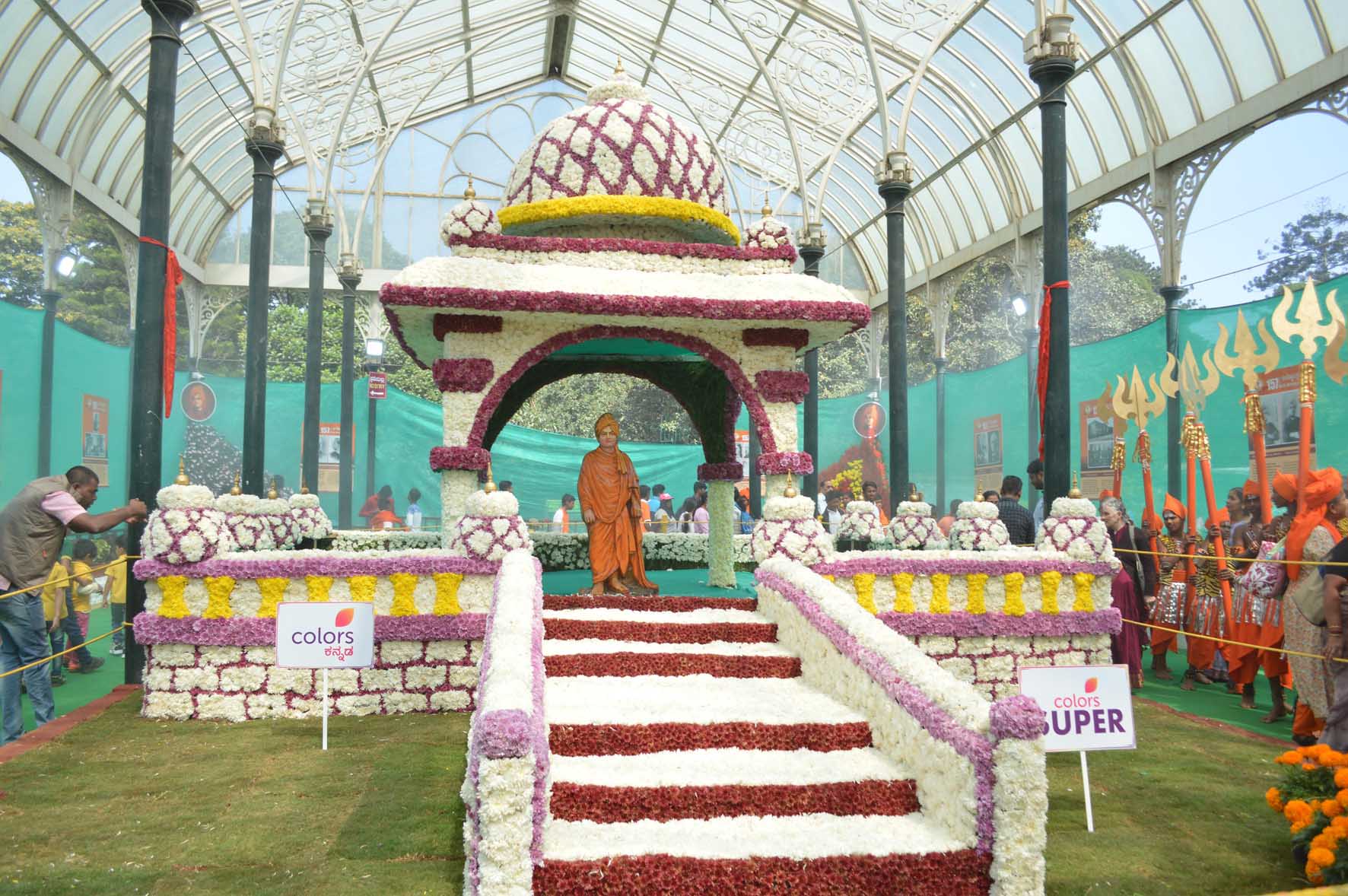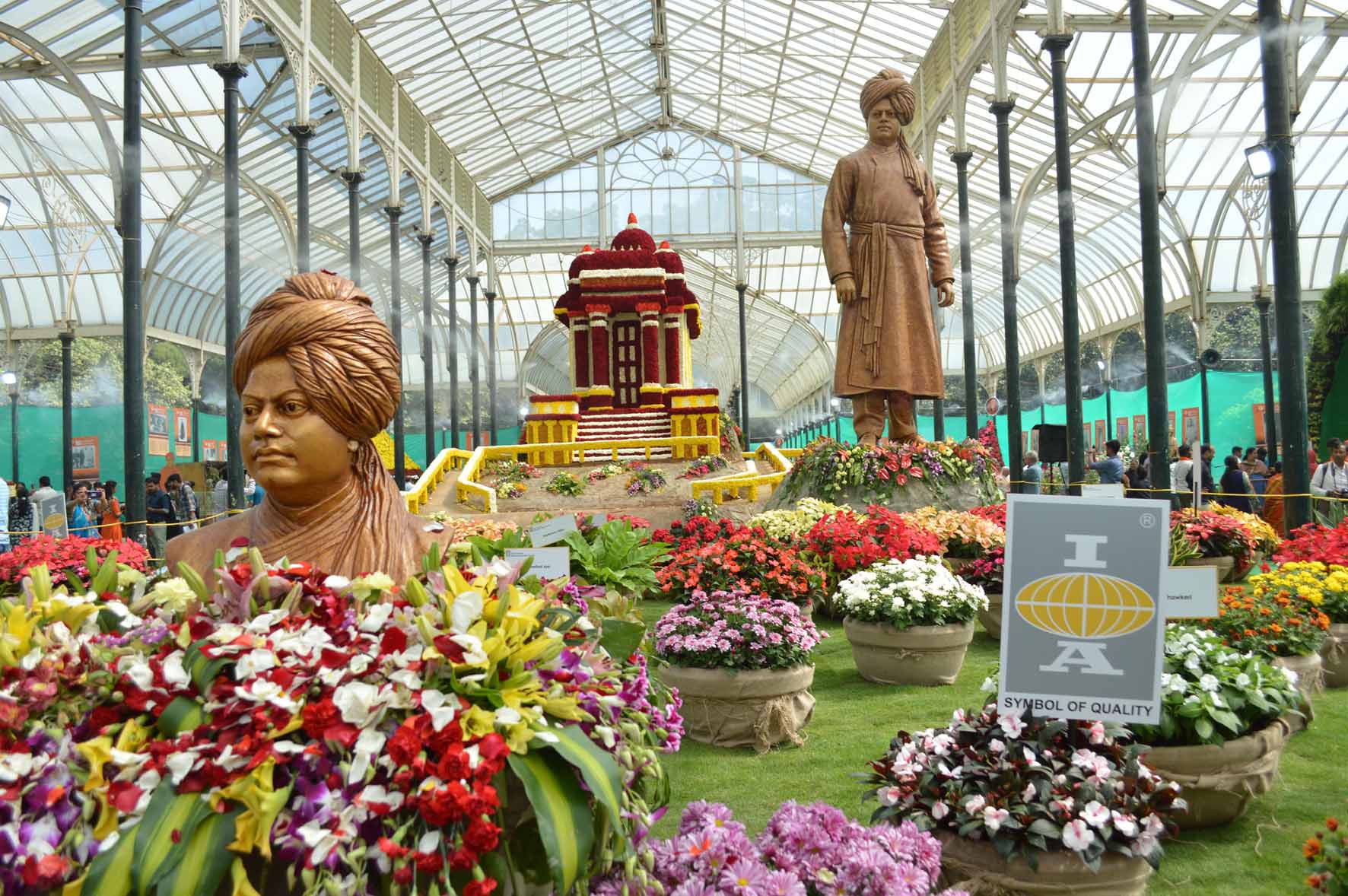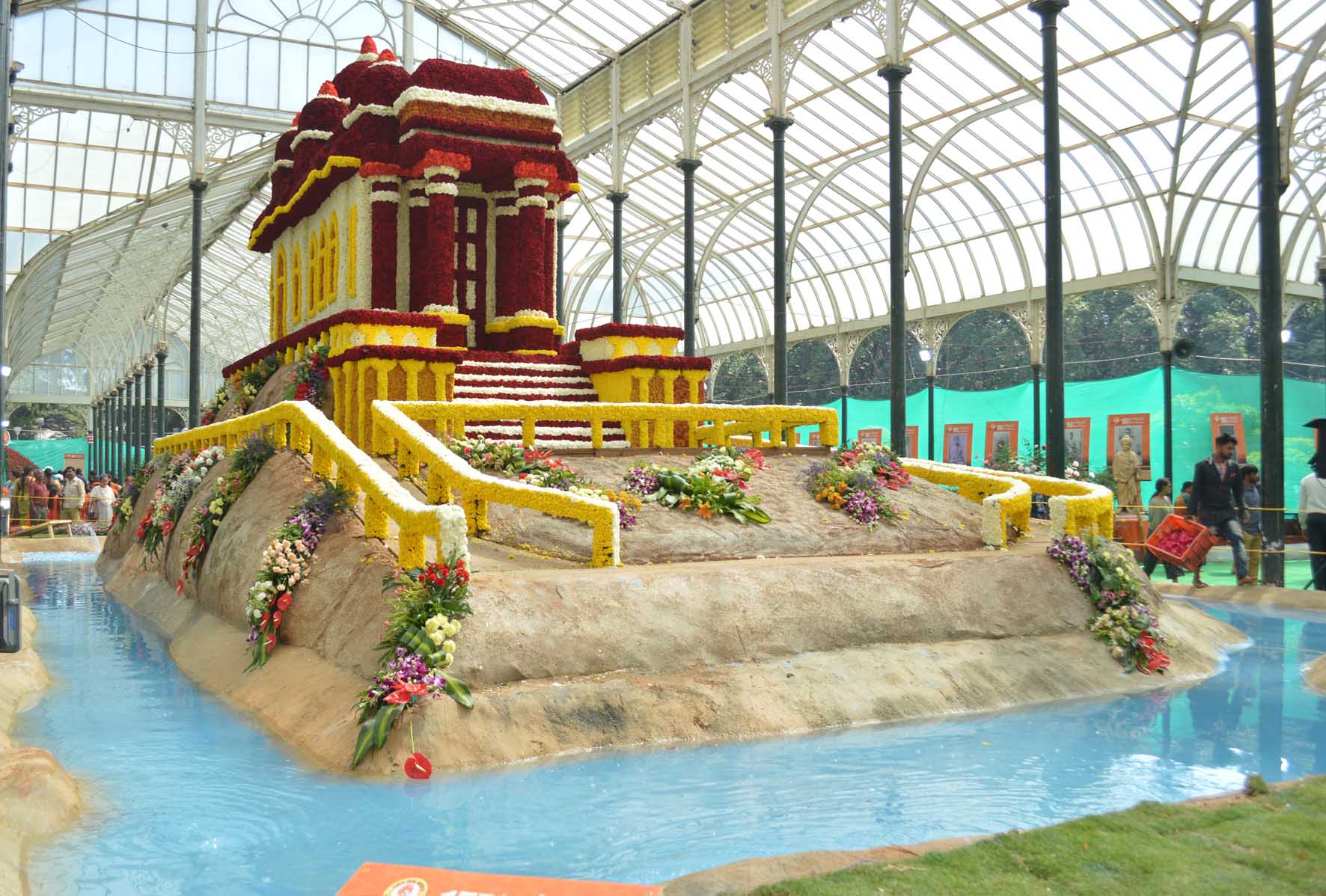 ತೋಟಗಾರಿಕೆ ಇಲಾಖೆ ಹಾಗೂ ಮೈಸೂರು ಉದ್ಯಾನ ಕಲಾಸಂಘ ಗಣರಾಜೋತ್ಸವದ ಅಂಗವಾಗಿ ಆಯೋಜಿಸಿರುವ ಫಲಪುಷ್ಪ ಪ್ರದರ್ಶನಕ್ಕೆ ಮುಖ್ಯಮಂತ್ರಿ ಬಿ.ಎಸ್.ಯಡಿಯೂರಪ್ಪ ಚಾಲನೆ ನೀಡಿದರು. ಈ ವೇಳೆ ತೋಟಗಾರಿಕೆ ಸಚಿವ ವಿ.ಸೋಮಣ್ಣ, ಮೇಯರ್ ಗೌತಮ್ ಕುಮಾರ್, ಇಲಾಖೆ ನಿರ್ದೇಶಕ ವಿ.ವೆಂಕಟೇಶ್ ಸೇರಿದಂತೆ ಹಲವರಿದ್ದರು. ಶಿಲ್ಪಿ ಬಿ.ಪಿ.ಶಿವಕುಮಾರ ಸಿದ್ಧಪಡಿಸಿರುವ ವಿವೇಕಾನಂದರ 16 ಅಡಿ ಎತ್ತರದ ಆಕರ್ಷಕ ಪ್ರತಿಮೆ ಜನರ ಆಕರ್ಷಣೆಯಾಗುತ್ತಿದ್ದರೆ, ಪಕ್ಕದಲ್ಲಿಯೇ ಇರುವ 1970 ರಂದು ಕನ್ಯಾಕುಮಾರಿಯಲ್ಲಿ ಉದ್ಘಾಟನೆಗೊಂಡಿರುವ ವಿವೇಕಾನಂದ ಸ್ಮಾರಕವು ಮತ್ತಷ್ಟು ಅಂದವನ್ನು ಹೆಚ್ಚಿಸಿದ್ದು, ಗಾಜಿನ ಮನೆಯ ಹೃದಯಭಾಗದಲ್ಲಿ ಇದು ನಿರ್ಮಾಣ ಮಾಡಲಾಗಿದೆ. ಇನ್ನು 36 ಅಡಿ ಉದ್ದದ ಬಂಡೆಯ ಮಾದರಿಯ ಮೇಲೆ ದೇವಾಲಯದ ಮಾದರಿ ನಿರ್ಮಾಣ ಮಾಡಿದ್ದು, ಇದಕ್ಕೆ 75 ಸಾವಿರ ಕೆಂಪು, ಬಿಳಿ ಹಾಗೂ ಹಳದಿ, 75 ಸಾವಿರ ಬಂಗಾರ ಬಣ್ಣದ ಸೇವಂತಿಗೆ, 3 ಸಾವಿರ ವಿವಿಧ ಜಾತಿಯ ಎಲೆಗಳನ್ನು ಬಳಸಿ ನಿರ್ಮಿಸಿದ್ದು ಮತ್ತಷ್ಟು ಅಂದವನ್ನು ಹೆಚ್ಚಿಸಿದೆ.