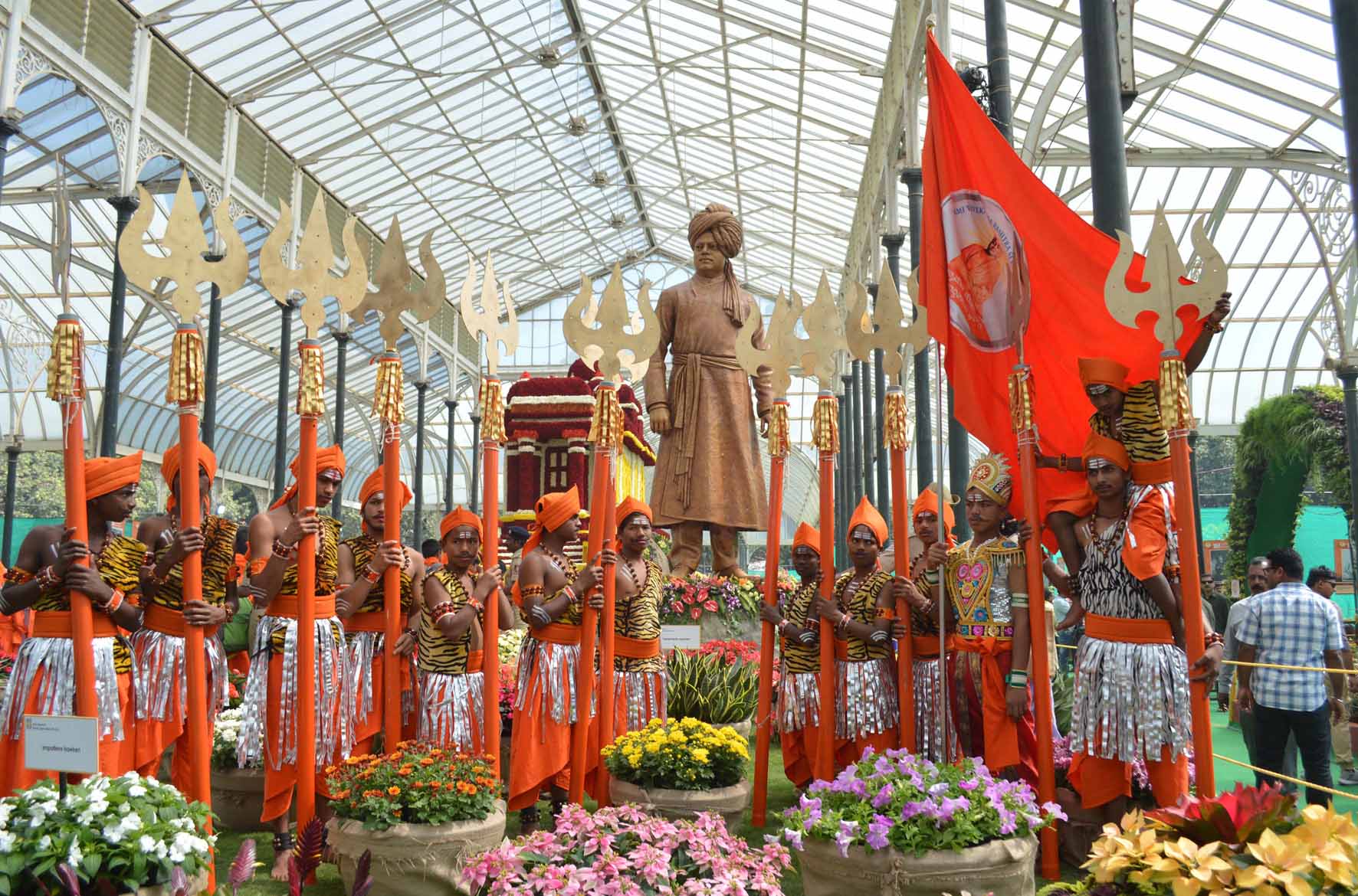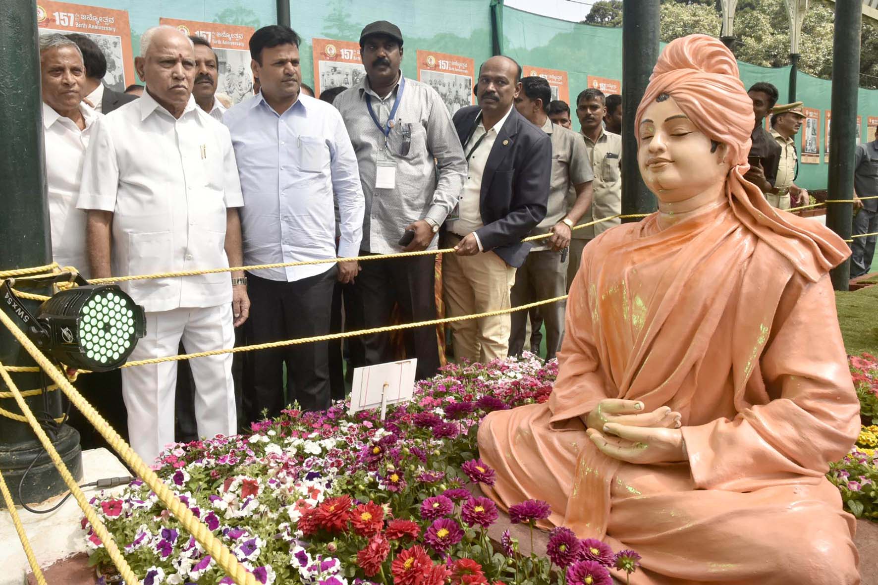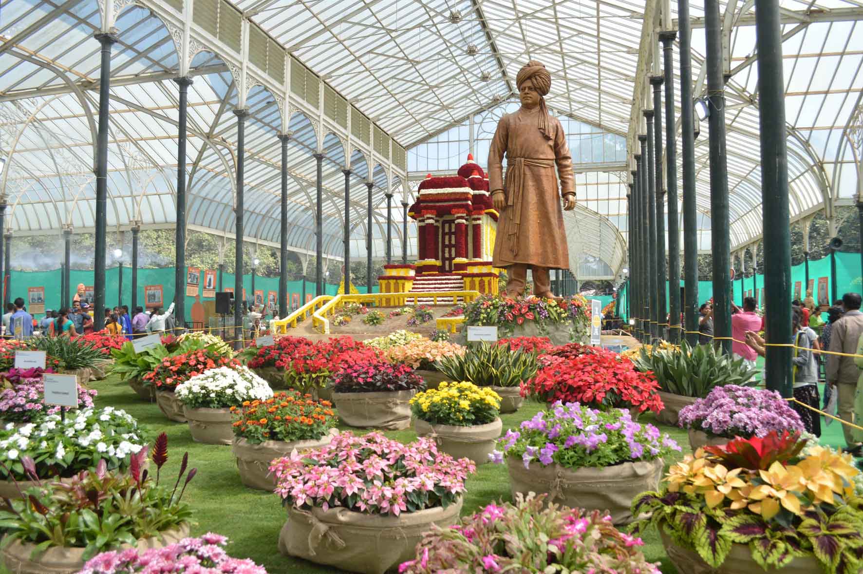 ತೋಟಗಾರಿಕೆ ಇಲಾಖೆ ಹಾಗೂ ಮೈಸೂರು ಉದ್ಯಾನ ಕಲಾಸಂಘ ಗಣರಾಜೋತ್ಸವದ ಅಂಗವಾಗಿ ಆಯೋಜಿಸಿರುವ ಫಲಪುಷ್ಪ ಪ್ರದರ್ಶನಕ್ಕೆ ಮುಖ್ಯಮಂತ್ರಿ ಬಿ.ಎಸ್.ಯಡಿಯೂರಪ್ಪ ಚಾಲನೆ ನೀಡಿದರು. ಈ ವೇಳೆ ತೋಟಗಾರಿಕೆ ಸಚಿವ ವಿ.ಸೋಮಣ್ಣ, ಮೇಯರ್ ಗೌತಮ್ ಕುಮಾರ್, ಇಲಾಖೆ ನಿರ್ದೇಶಕ ವಿ.ವೆಂಕಟೇಶ್ ಸೇರಿದಂತೆ ಹಲವರಿದ್ದರು. ಶಿಲ್ಪಿ ಬಿ.ಪಿ.ಶಿವಕುಮಾರ ಸಿದ್ಧಪಡಿಸಿರುವ ವಿವೇಕಾನಂದರ 16 ಅಡಿ ಎತ್ತರದ ಆಕರ್ಷಕ ಪ್ರತಿಮೆ ಜನರ ಆಕರ್ಷಣೆಯಾಗುತ್ತಿದ್ದರೆ, ಪಕ್ಕದಲ್ಲಿಯೇ ಇರುವ 1970 ರಂದು ಕನ್ಯಾಕುಮಾರಿಯಲ್ಲಿ ಉದ್ಘಾಟನೆಗೊಂಡಿರುವ ವಿವೇಕಾನಂದ ಸ್ಮಾರಕವು ಮತ್ತಷ್ಟು ಅಂದವನ್ನು ಹೆಚ್ಚಿಸಿದ್ದು, ಗಾಜಿನ ಮನೆಯ ಹೃದಯಭಾಗದಲ್ಲಿ ಇದು ನಿರ್ಮಾಣ ಮಾಡಲಾಗಿದೆ. ಇನ್ನು 36 ಅಡಿ ಉದ್ದದ ಬಂಡೆಯ ಮಾದರಿಯ ಮೇಲೆ ದೇವಾಲಯದ ಮಾದರಿ ನಿರ್ಮಾಣ ಮಾಡಿದ್ದು, ಇದಕ್ಕೆ 75 ಸಾವಿರ ಕೆಂಪು, ಬಿಳಿ ಹಾಗೂ ಹಳದಿ, 75 ಸಾವಿರ ಬಂಗಾರ ಬಣ್ಣದ ಸೇವಂತಿಗೆ, 3 ಸಾವಿರ ವಿವಿಧ ಜಾತಿಯ ಎಲೆಗಳನ್ನು ಬಳಸಿ ನಿರ್ಮಿಸಿದ್ದು ಮತ್ತಷ್ಟು ಅಂದವನ್ನು ಹೆಚ್ಚಿಸಿದೆ.