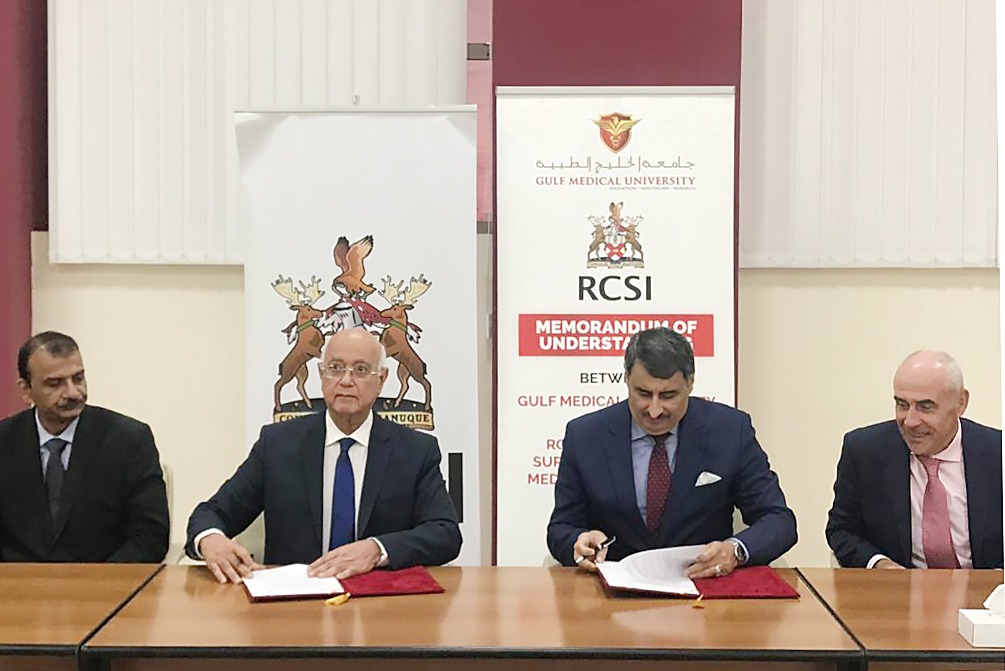 ಅಜ್ಮಾನ್, ಜ.19: ವೈದ್ಯಕೀಯ ಶಿಕ್ಷಣ ಮತ್ತು ಸಂಶೋಧನೆಯಲ್ಲಿ ಪರಸ್ಪರ ಸಹಭಾಗಿತ್ವಕ್ಕೆ ಉತ್ತೇಜನ ನೀಡುವ ಉದ್ದೇಶದ ತಿಳುವಳಿಕಾ ಪತ್ರಕ್ಕೆ ಅಜ್ಮಾನ್ನ ಗಲ್ಪ್ ಮೆಡಿಕಲ್ ಯುನಿವರ್ಸಿಟಿ(ಜಿಎಂಯು) ಮತ್ತು ಬಹ್ರೇನ್ನ ರಾಯಲ್ ಕಾಲೇಜ್ ಆಫ್ ಸರ್ಜನ್ಸ್, ಐರ್ಲ್ಯಾಂಡ್ (ಆರ್ಸಿಎಸ್ಐ) ಸಹಿ ಹಾಕಿವೆ.