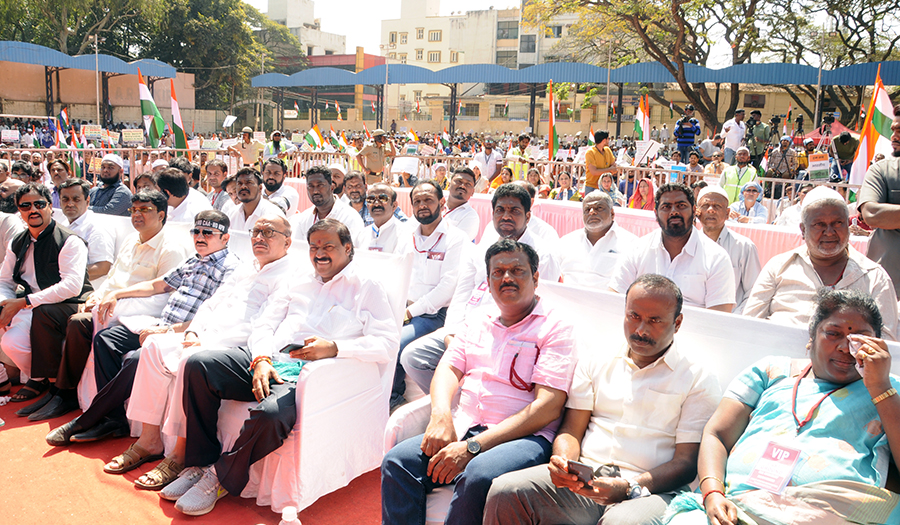 ಸೋಮವಾರ ಇಲ್ಲಿನ ಪುಲಿಕೇಶಿನಗರದ ಫುಟ್ಬಾಲ್ ಮೈದಾನದಲ್ಲಿ ಜಂಟಿ ಕ್ರಿಯಾ ಸಮಿತಿ ಆಯೋಜಿಸಿದ್ದ ಎನ್ಆರ್ಸಿ, ಸಿಎಎ ಹಾಗೂ ಎನ್ಪಿಆರ್ ವಿರುದ್ಧದ ಪ್ರತಿಭಟನಾ ಸಭೆಯಲ್ಲಿ ಪಾಲ್ಗೊಂಡಿದ್ದ ವೇಳೆ ಅವರು ಸುದ್ದಿಗಾರರೊಂದಿಗೆ ಮಾತನಾಡಿದರು.