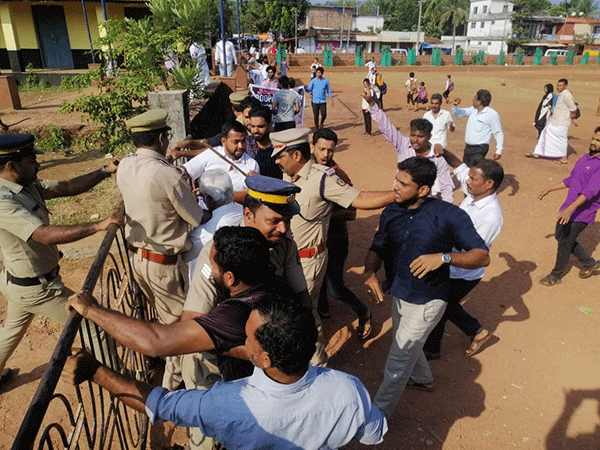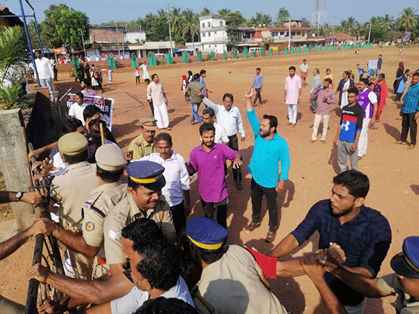 ಈ ಸಂದರ್ಭ ಶಾಲಾ ಆವರಣದೊಳಗೆ ನುಗ್ಗಲೆತ್ನಿಸಿದ ಧರಣಿನಿರತರನ್ನು ಪೊಲೀಸರು ತಡೆದರು.