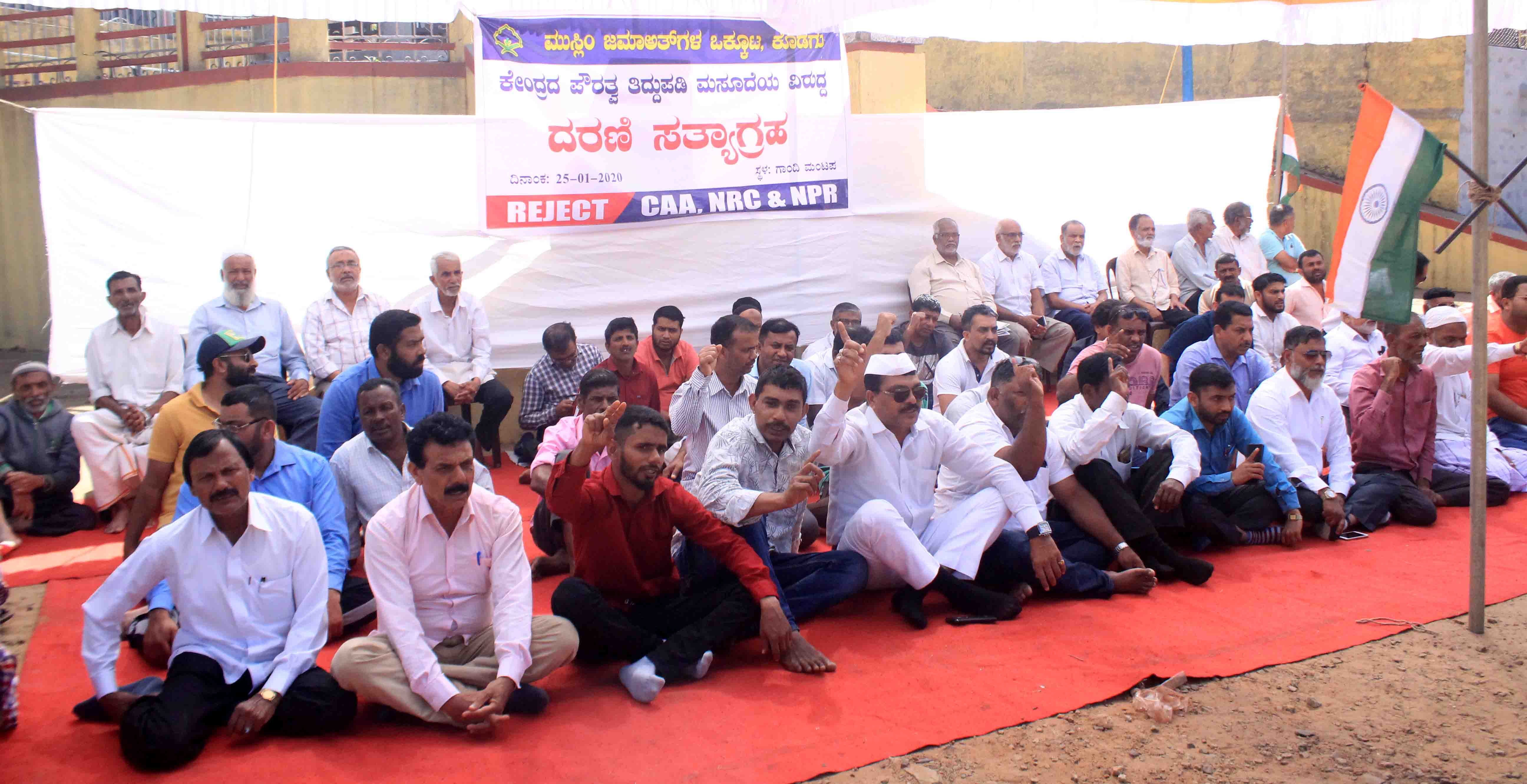 ಸಿಎಎ-ಎನ್ಆರ್ಸಿ ವಿರೋಧಿಸಿ ಮಡಿಕೇರಿಯಲ್ಲಿ ಮುಸ್ಲಿಂ ಜಮಾಅತ್ಗಳ ಒಕ್ಕೂಟದಿಂದ ಧರಣಿ ಸತ್ಯಾಗ್ರಹ