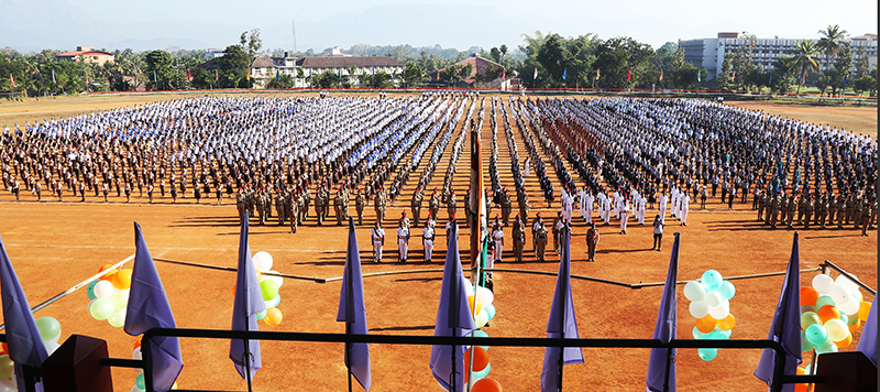 ಬೆಳ್ತಂಗಡಿ: ಉಜಿರೆಯ ಡಿ.ರತ್ನವರ್ಮ ಹೆಗ್ಗಡೆ ಕ್ರೀಡಾಂಗಣವು ಎಸ್.ಡಿ.ಎಂ ಶಿಕ್ಷಣ ಸಂಸ್ಥೆ ಆಯೋಜಿಸಿದ 71ನೇ ಗಣರಾಜ್ಯೋತ್ಸವ ಕಾರ್ಯಕ್ರಮಕ್ಕೆ ಸಾಕ್ಷಿಯಾಯಿತು. ಎನ್ಸಿಸಿ ತಂಡದ ಆಕರ್ಷಣೀಯ ಪಥಸಂಚಲನ, ಪ್ರಾಥಮಿಕ, ಪ್ರೌಢ, ಪದವಿಪೂರ್ವ, ಪದವಿ ಮತ್ತು ಸ್ನಾತಕೋತ್ತರ ಪದವಿಯ ಸಾವಿರಾರು ವಿದ್ಯಾರ್ಥಿಗಳ ಶಿಸ್ತುಬದ್ಧವಾಗಿ ಭಾಗವಹಿಸಿದ್ದರು.