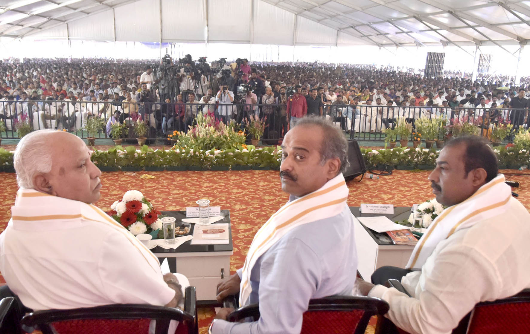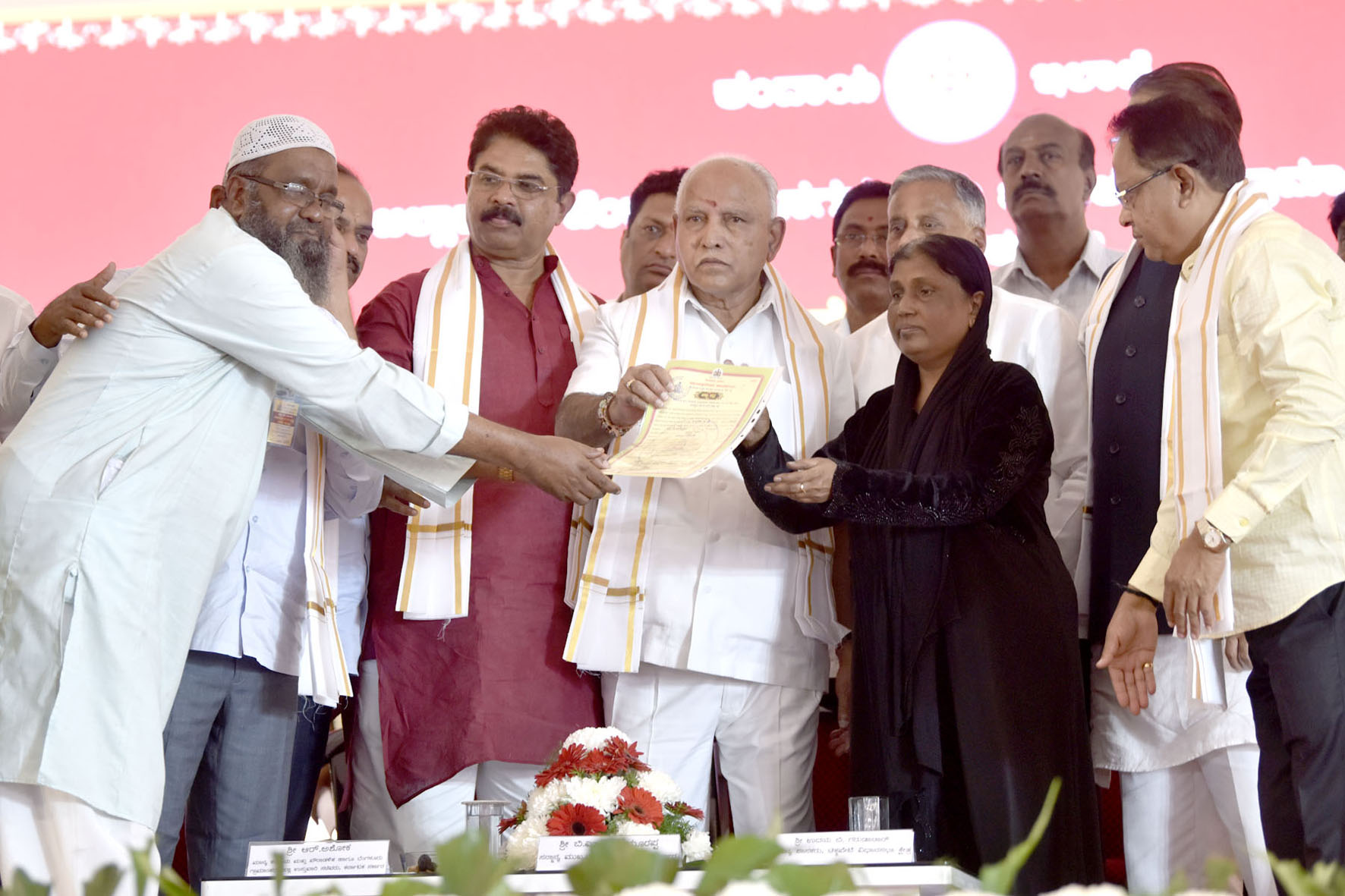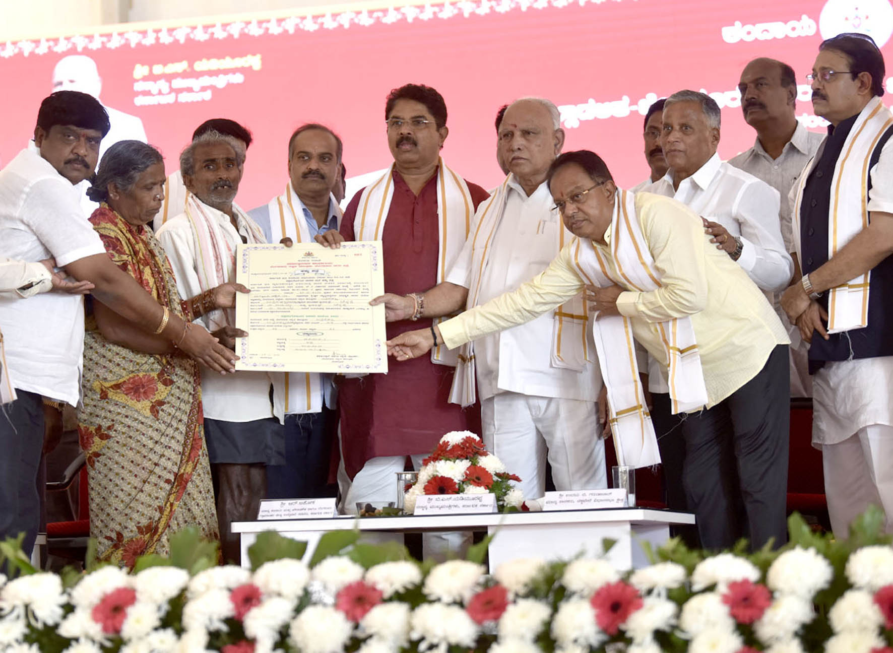 ಮಂಗಳವಾರ ನಗರದ ನ್ಯಾಷನಲ್ ಕಾಲೇಜು ಮೈದಾನದಲ್ಲಿ ಬೆಂಗಳೂರು ನಗರ ಹಾಗೂ ಗ್ರಾಮಾಂತರ ಜಿಲ್ಲೆಗಳ ಜಿಲ್ಲಾಡಳಿತಗಳ ಸಂಯುಕ್ತಾಶ್ರಯದಲ್ಲಿ ಆಯೋಜಿಸಿದ್ದ ಅಕ್ರಮ-ಸಕ್ರಮ ಯೋಜನೆ ಅಡಿಯಲ್ಲಿ 10 ಸಾವಿರ ಫಲಾನುಭವಿಗಳಿಗೆ ಹಕ್ಕುಪತ್ರ ವಿತರಣಾ ಸಮಾರಂಭದಲ್ಲಿ ಪಾಲ್ಗೊಂಡು ಅವರು ಮಾತನಾಡಿದರು.