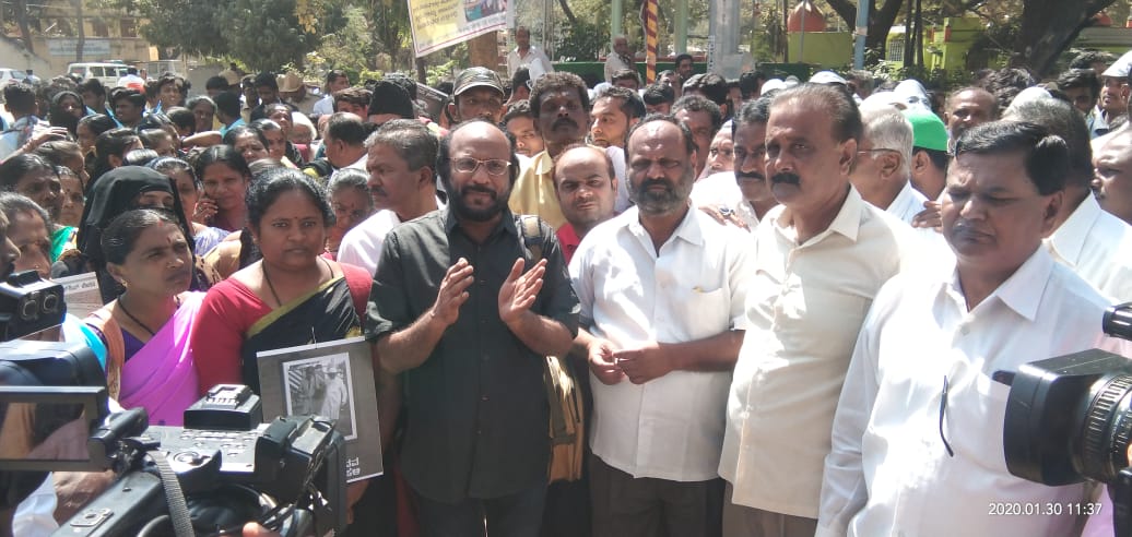 ಕೋಲಾರ,ಜ.30: ಸಿಎಎ, ಎನ್ಆರ್ಸಿ, ಎನ್ ಪಿಆರ್ ವಿರೋಧಿಸಿ ವಿವಿಧ ಜನಪರ ಸಂಘಟನೆಗಳಿಂದ ಮಹಾತ್ಮ ಗಾಂಧೀಜಿ ವನದಿಂದ ಮಾನವ ಸರಪಳಿಯನ್ನು ನಿರ್ಮಿಸಿ ಪ್ರತಿಭಟನೆ ನಡೆಸಲಾಯಿತು.
