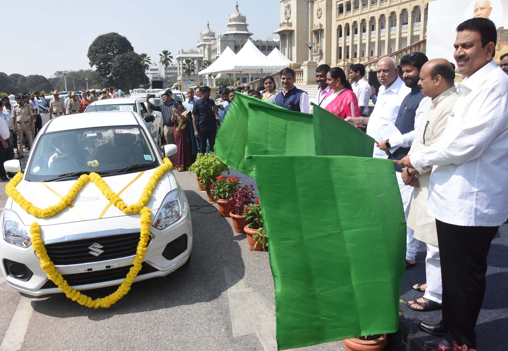 ಶನಿವಾರ ವಿಧಾನಸೌಧದ ವೈಭವಪೇತ ಮೆಟ್ಟಿಲುಗಳ ಮೇಲೆ ಪ್ರವಾಸೋದ್ಯಮ ಇಲಾಖೆ ಏರ್ಪಡಿಸಿದ್ದ ಎಸ್ಸಿ-ಎಸ್ಟಿ, ಹಿಂದುಳಿದ ಮತ್ತು ಅಲ್ಪಸಂಖ್ಯಾತ ನಿರುದ್ಯೋಗಿ ಯುವಕರಿಗೆ ಟ್ಯಾಕ್ಸಿ ವಿತರಣೆಗೆ ಹಸಿರು ನಿಶಾನೆ ತೋರಿಸಿದ ಬಳಿಕ ಮಾತನಾಡಿದ ಅವರು, ರಾಜ್ಯಾದ್ಯಂತ 450 ಟ್ಯಾಕ್ಸಿಗಳನ್ನು ವಿತರಿಸುತ್ತಿದ್ದು, 107 ಪ್ರವಾಸಿ ಟ್ಯಾಕ್ಸಿ ನೀಡಲಾಗಿದೆ ಎಂದರು.