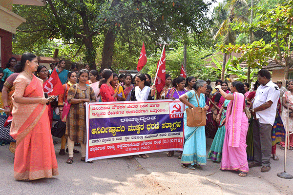 ಕರ್ನಾಟಕ ರಾಜ್ಯ ಅಕ್ಷರ ದಾಸೋಹ ನೌಕರರ ಸಂಘ ( ಸಿಐಟಿಯು) ನೇತೃತ್ವದಲ್ಲಿ ನಡೆದ ಧರಣಿಯಲ್ಲಿ ಬೆಂಗಳೂರಿನಲ್ಲಿ ಪ್ರತಿಭಟನೆ ತಡೆಯೊಡ್ಡಿದ ಸರಕಾರದ ವಿರುದ್ಧ ಆಕ್ರೋಶ ವ್ಯಕ್ತವಾಯಿತು.