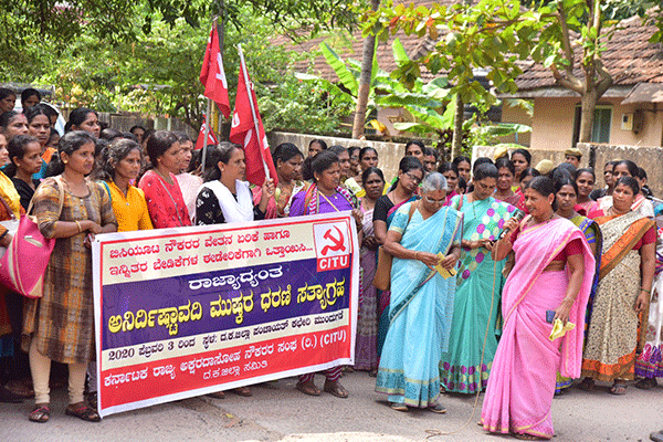 ಮಂಗಳೂರು: ವಿವಿಧ ಬೇಡಿಕೆ ಈಡೇರಿಕೆಗೆ ಆಗ್ರಹಿಸಿ ಬಿಸಿಯೂಟ ನೌಕರರ ಧರಣಿ