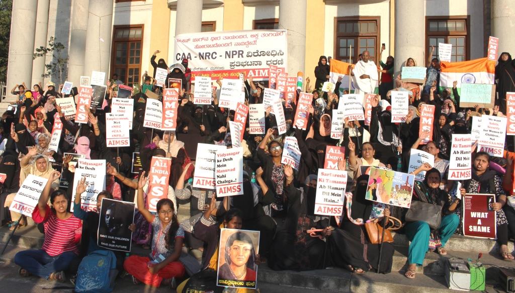 ಇಲ್ಲಿನ ಪುರಭವನ ಮುಂಭಾಗ ಜಮಾಯಿಸಿದ ಎಐಎಂಎಸ್ಎಸ್ ಸದಸ್ಯರು, ಈ ಕೂಡಲೇ ಕೇಂದ್ರ ಸರಕಾರ ಸಿಎಎ, ಎನ್ಆರ್ಸಿ ಹಾಗೂ ಎನ್ಪಿಆರ್ ಪ್ರಕ್ರಿಯೆಗಳಿಗೆ ತಡೆ ನೀಡಬೇಕು ಎಂದು ಒತ್ತಾಯ ಮಾಡಿದರು.