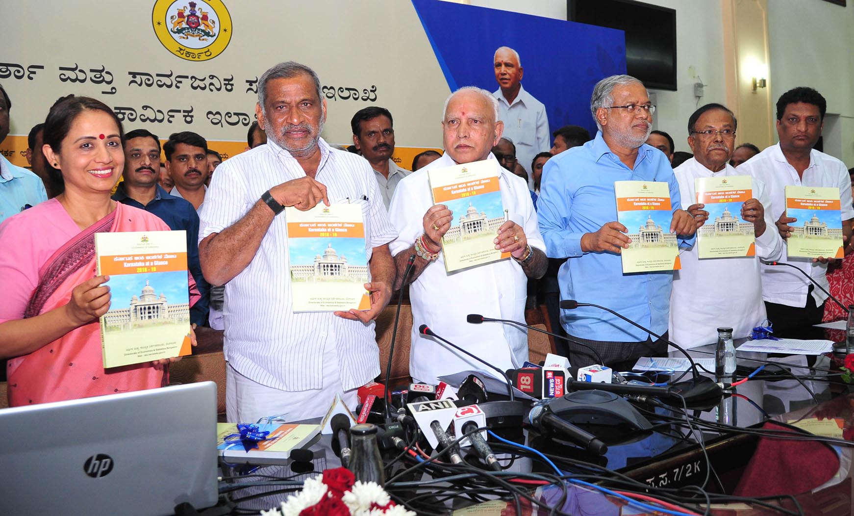 ಬೆಂಗಳೂರು, ಫೆ.4: ಮುಖ್ಯಮಂತ್ರಿ ಬಿ.ಎಸ್.ಯಡಿಯೂರಪ್ಪ ಮಂಗಳವಾರ ವಿಧಾನಸೌಧದ ಸಮ್ಮೇಳನ ಸಭಾಂಗಣದಲ್ಲಿ ಕರ್ನಾಟಕ ಅಂಕಿ ಅಂಶಗಳ ನೋಟ ಪುಸ್ತಕ ಬಿಡುಗಡೆ ಮಾಡಿ, ಆರ್ಟಿಐ ಆನ್ಲೈನ್ ಸೇವೆ ಹಾಗೂ ಸಕಾಲ ಮಿಷನ್ ಯೋಜನೆಯಡಿ ಜನಸೇವಕ ಯೋಜನೆ ವಿಸ್ತರಣೆ ಕಾರ್ಯಕ್ರಮಕ್ಕೆ ಚಾಲನೆ ನೀಡಿದರು.