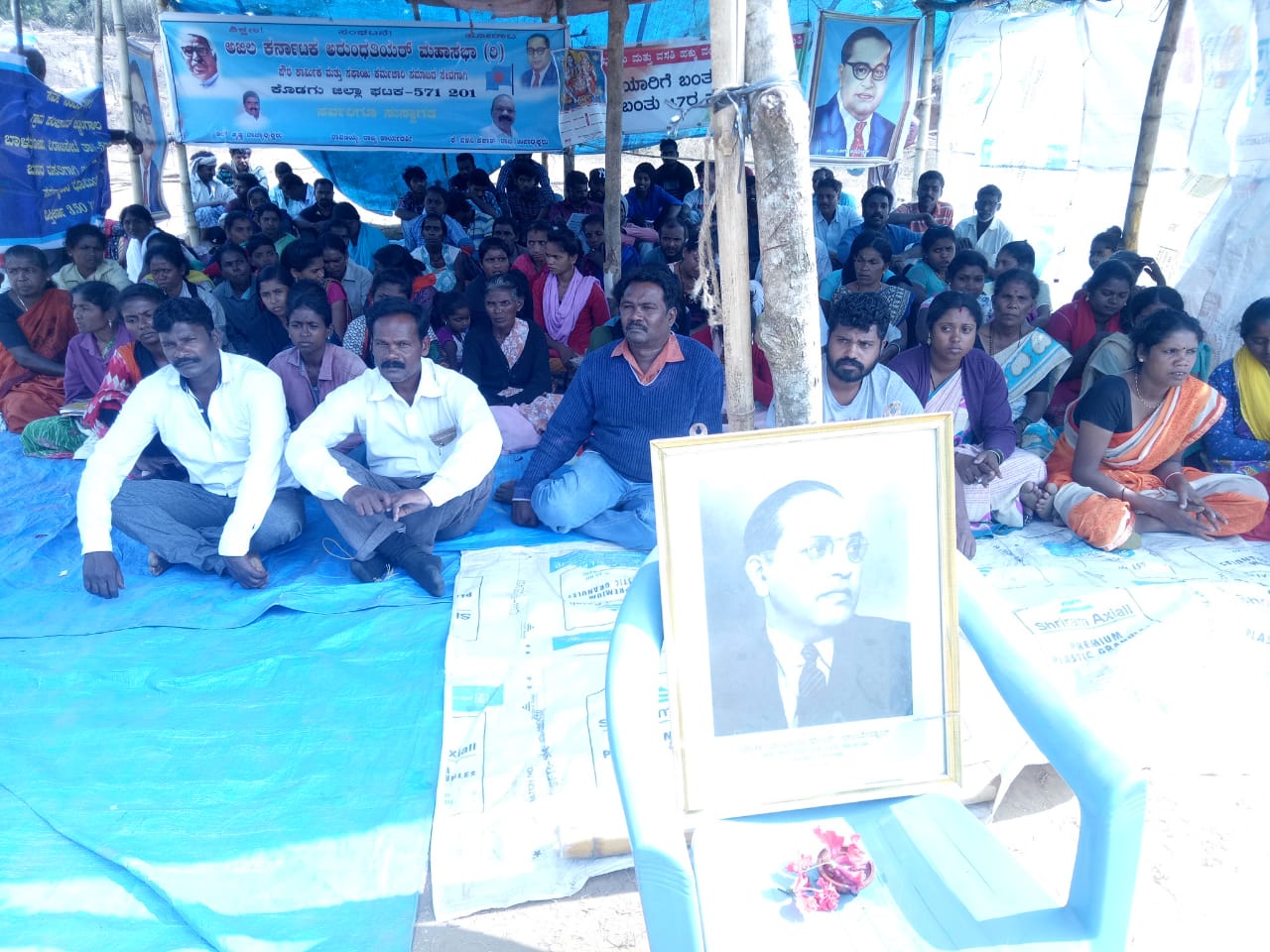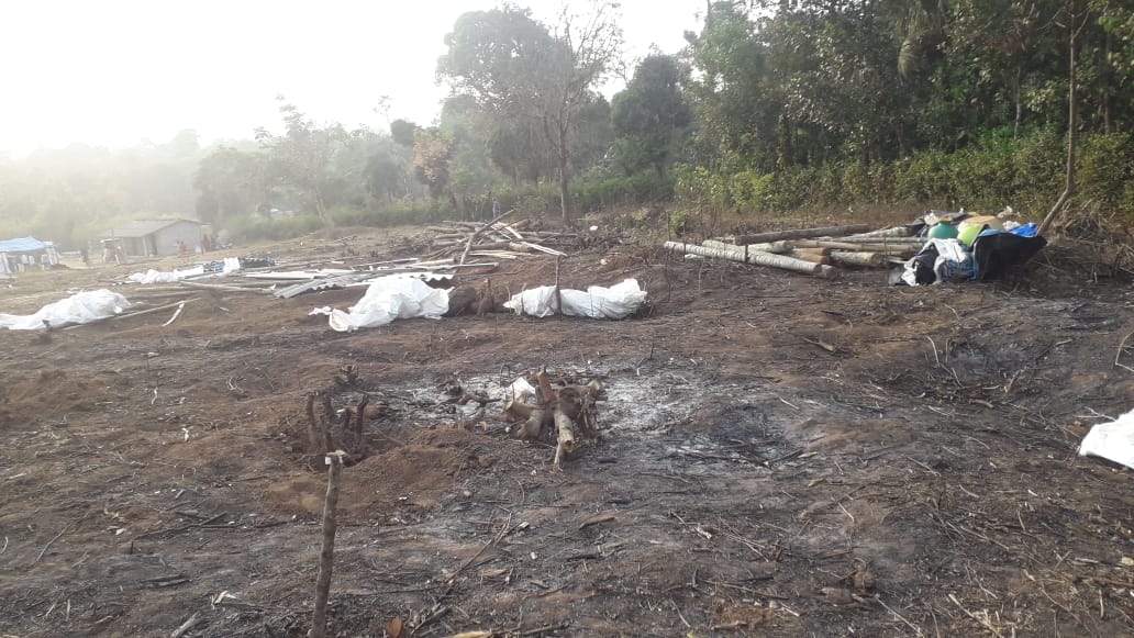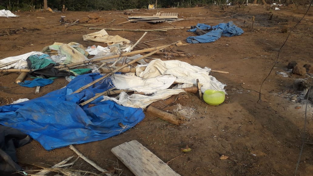 ವಸತಿ ರಹಿತರು ಹಾಕಿಕೊಂಡಿದ್ದ ಗುಡಿಸಲುಗಳನ್ನು ಬುಧವಾರ ಮಧ್ಯಾಹ್ನ ತಾಲೂಕಾಡಳಿತ ತೆರವುಗೊಳಿಸಲಾಗಿತ್ತು. ಆದಿವಾಸಿ, ದಲಿತ ಹಾಗೂ ಹಿಂದುಳಿದ ವರ್ಗಗಳ ನಿವೇಶನರಹಿತ ಕುಟುಂಬಳ ಮ್ಕಳು, ಮಹಿಳೆಯರು ಸೇರಿದಂತೆ ನೂರಾರು ಮಂದಿ ಗುಡಿಸಲುಳನ್ನು ತೆರವುಗೊಳಿಸಿದ ಜಾಗದಲ್ಲಿಯೇ ಹೋರಾಟಕ್ಕಾಗಿ ಶೆಡ್ ನಿರ್ಮಿಸಿ ಪ್ರತಿಭಟನೆಯನ್ನು ಮುಂದುವರಿಸಿದ್ದಾರೆ. ಸ್ಥಳದಲ್ಲಿ ಬಿಗಿ ಪೊಲೀಸ್ ಬಂದೋಬಸ್ತ್ ಕಲ್ಪಿಸಲಾಗಿದೆ.