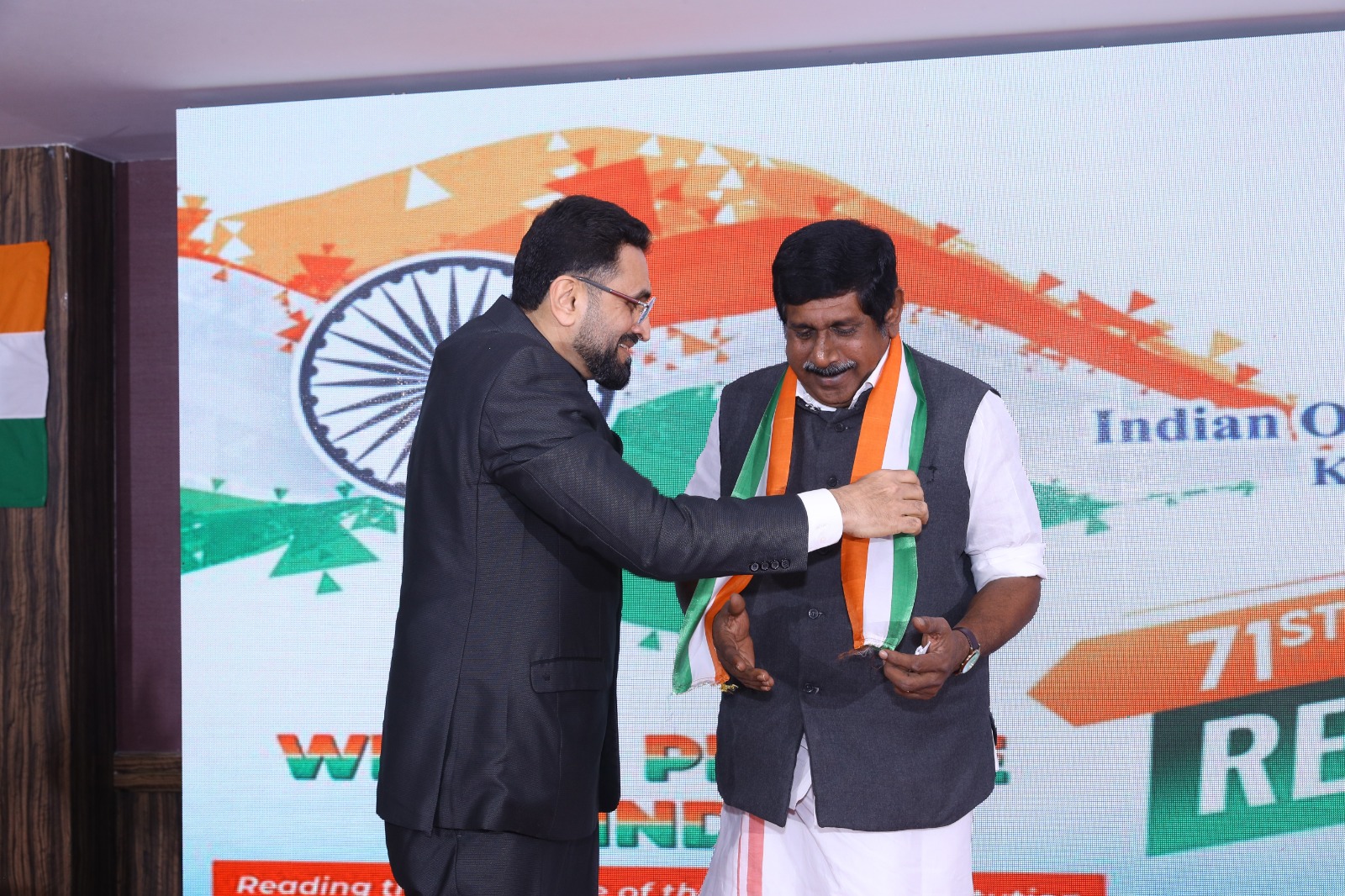 ಬಶೀರ್ ಅಂಬಲಾವಿ(ಪ್ರಧಾನ ಕಾರ್ಯದರ್ಶಿ ಐಒಸಿ)ಧನ್ಯವಾದ ಸಮರ್ಪಿಸಿದರು. ಶರ್ವಾನಿ ಮಂಜುನಾಥ ಹಾಗೂ ಮಾಸ್ಟರ್ ಮಾನ್ವಿತ್ ದೇಶಭಕ್ತಿಗೀತೆಯನ್ನು ಹಾಡಿದರು. ಕಾರ್ಯಕ್ರಮವನ್ನು ಇಂಡಿಯನ್ ಸ್ಕೂಲ್ ಇಸಿಯ ಮಾಜಿ ಕಾರ್ಯದರ್ಶಿ, ಕವಿಯತ್ರಿ ಹಾಗೂ ಬಹರೈನ್ ಯೂನಿವರ್ಸಿಟಿಯ ಪ್ರೊ. ಶಾವಿುಲಿ ಪಿ.ಜಾನ್ ನಿರೂಪಿಸಿದರು.
